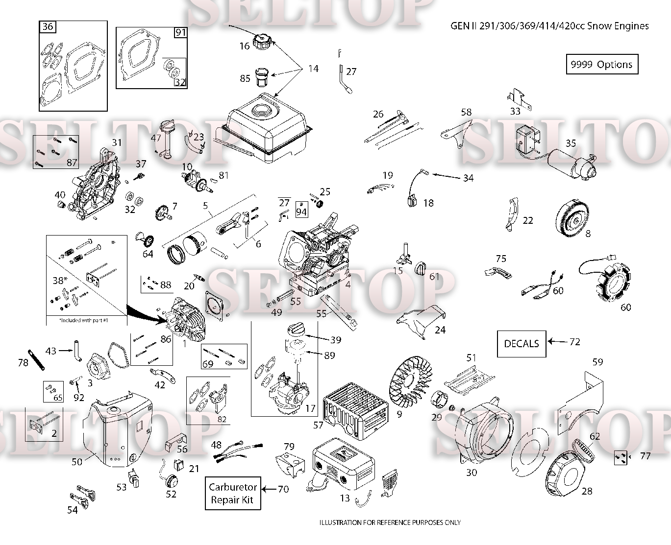 Двигатель для Хускварна ST 327T (артикул модели 96193009302) (с 2015-06), взрыв-схема: