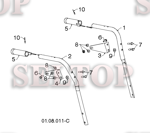 Верхняя часть ручки с крепежом для Хускварна ST 330T (артикул модели 96191008602) (с 2016-04), взрыв-схема: