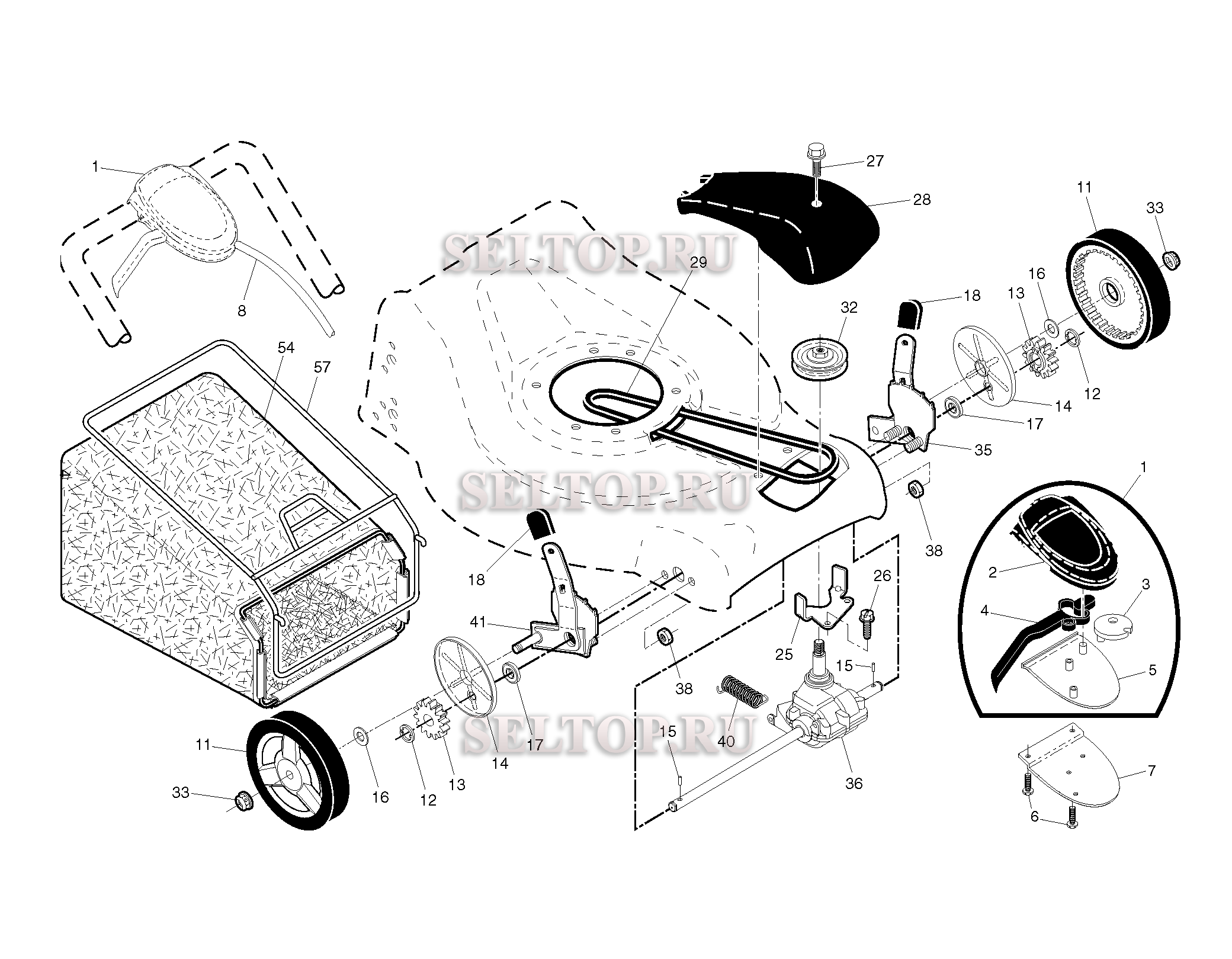 Привод для газонокосилки Husqvarna 7021 F артикул модели 96143004201 (с 2009-12), взрыв-схема: