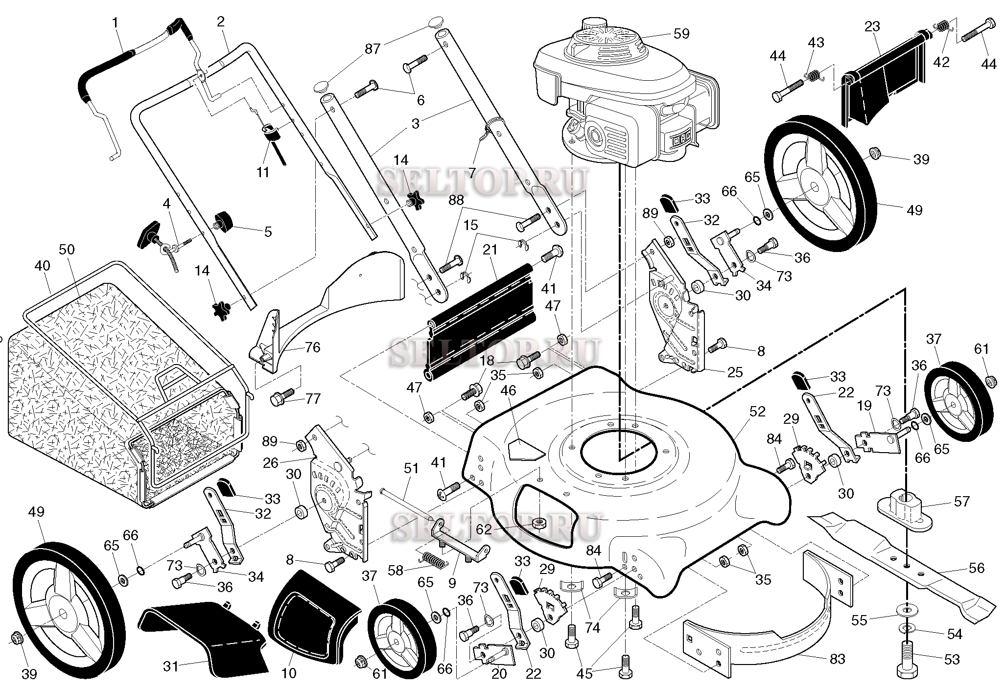 Рама и двигатель для газонокосилки Husqvarna 7021 P артикул модели 96133003000 (с 2016-07)