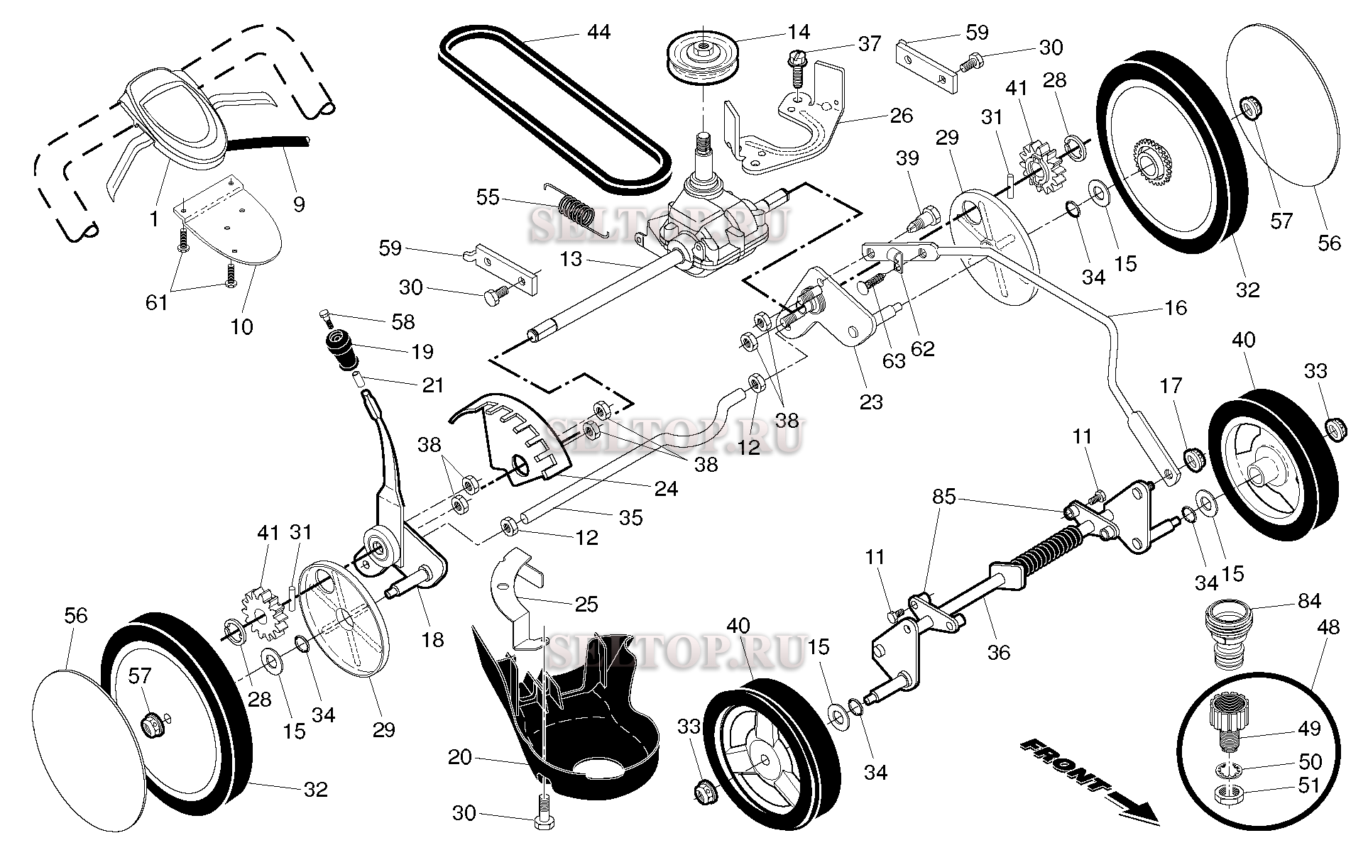Привод для газонокосилки Husqvarna HD 775 HW артикул модели 96143008600 (с 2011-10), взрыв-схема: