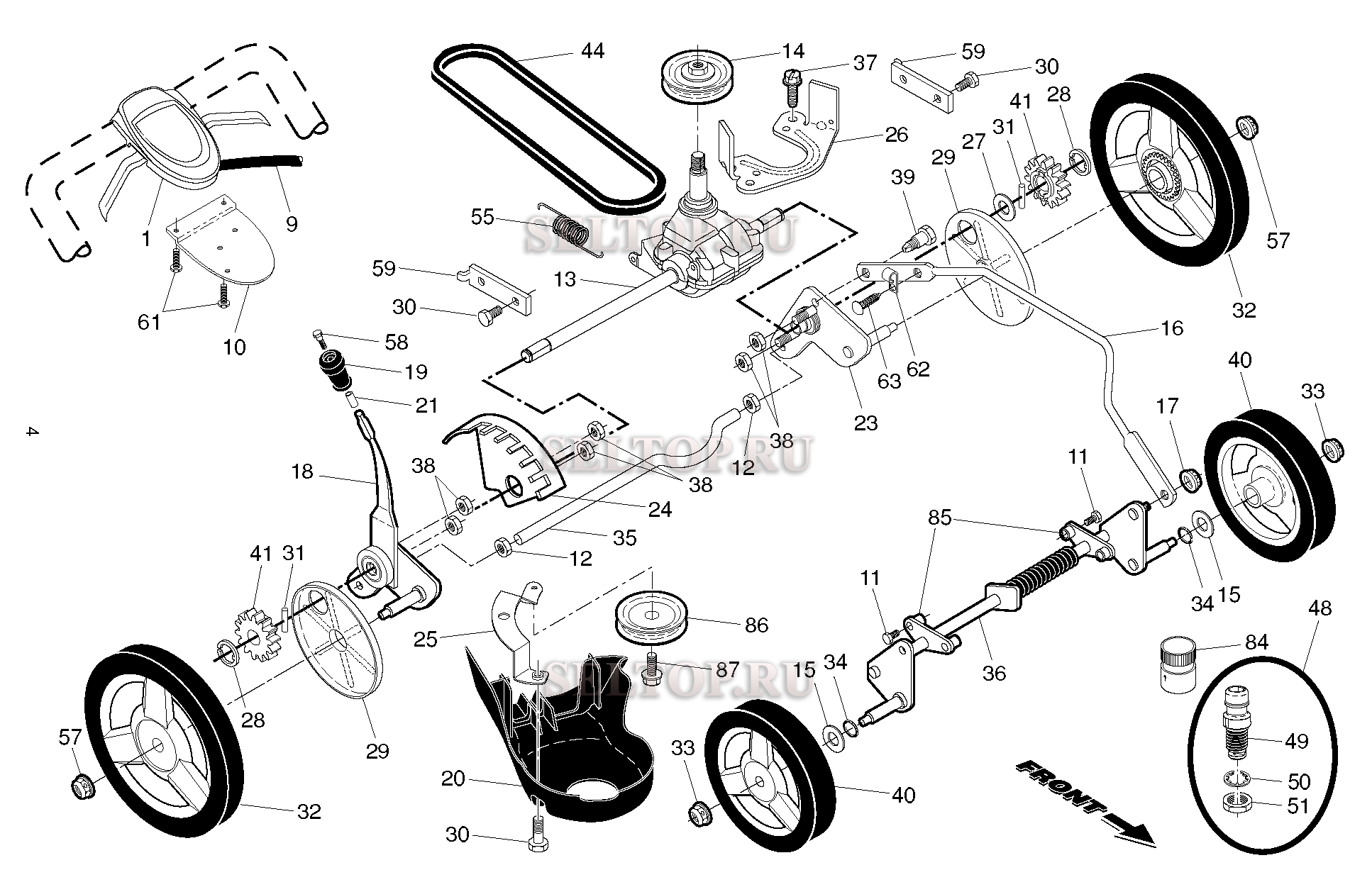 Привод для газонокосилки Husqvarna HU 700 H артикул модели 96145002300 (с 2014-11), взрыв-схема: