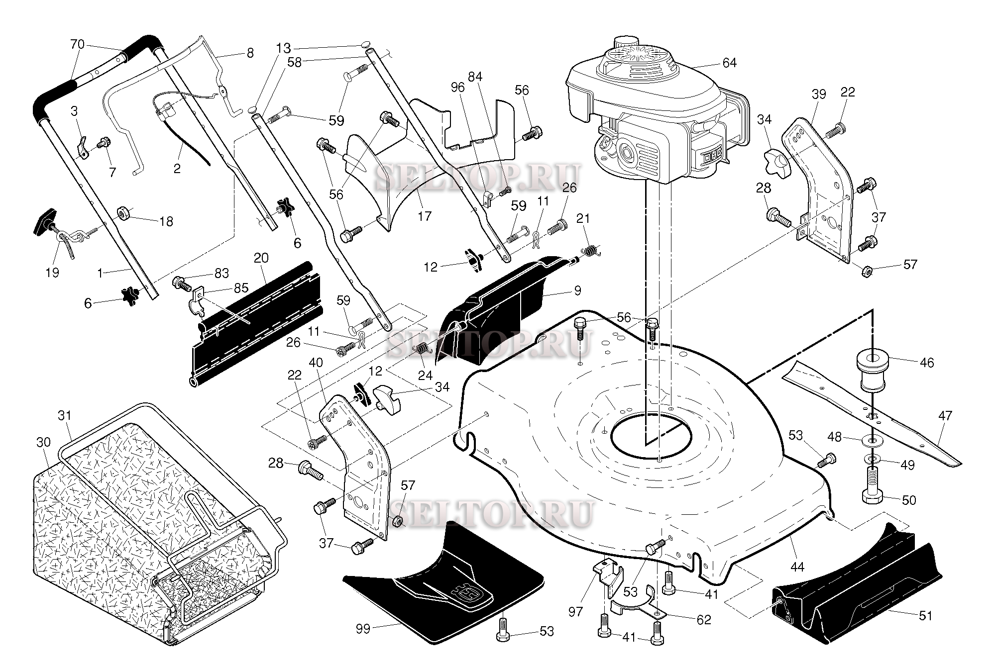 Рама и двигатель для газонокосилки Husqvarna HU 700 L артикул модели 96143006901 (с 2011-04), взрыв-схема: