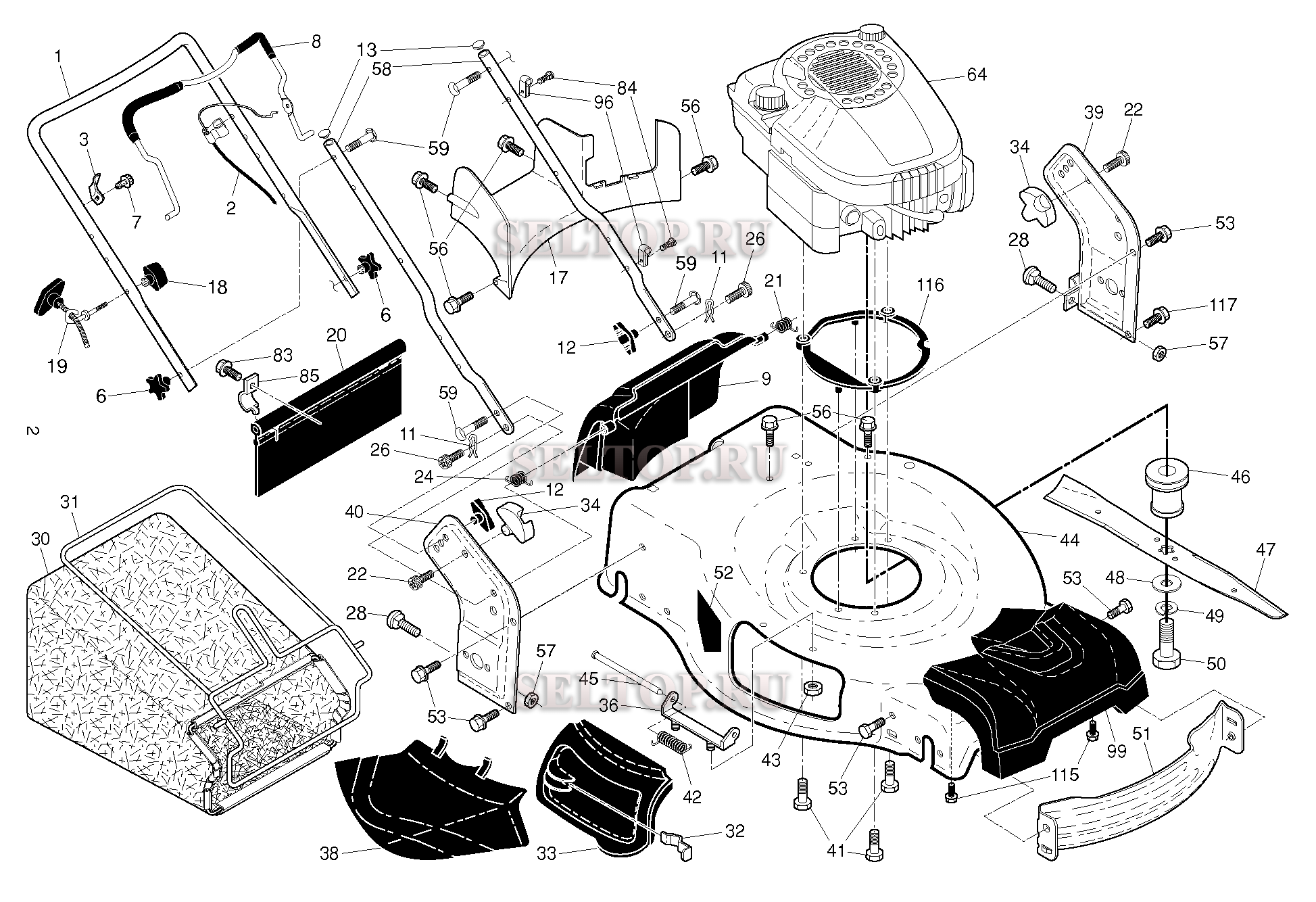 Рама и двигатель для газонокосилки Husqvarna HU 725 AWD артикул модели 96145001700 (с 2013-11)