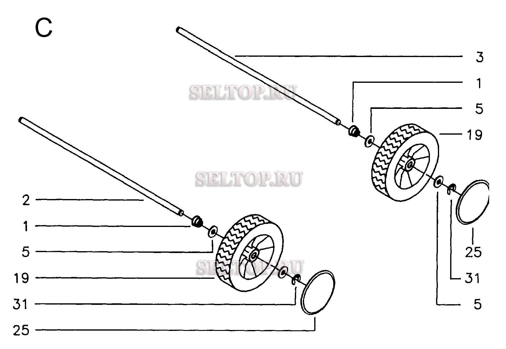 Колеса и покрышки для газонокосилки Husqvarna JET 46 R (с двигателем Tecumseh) (с 1996-01)