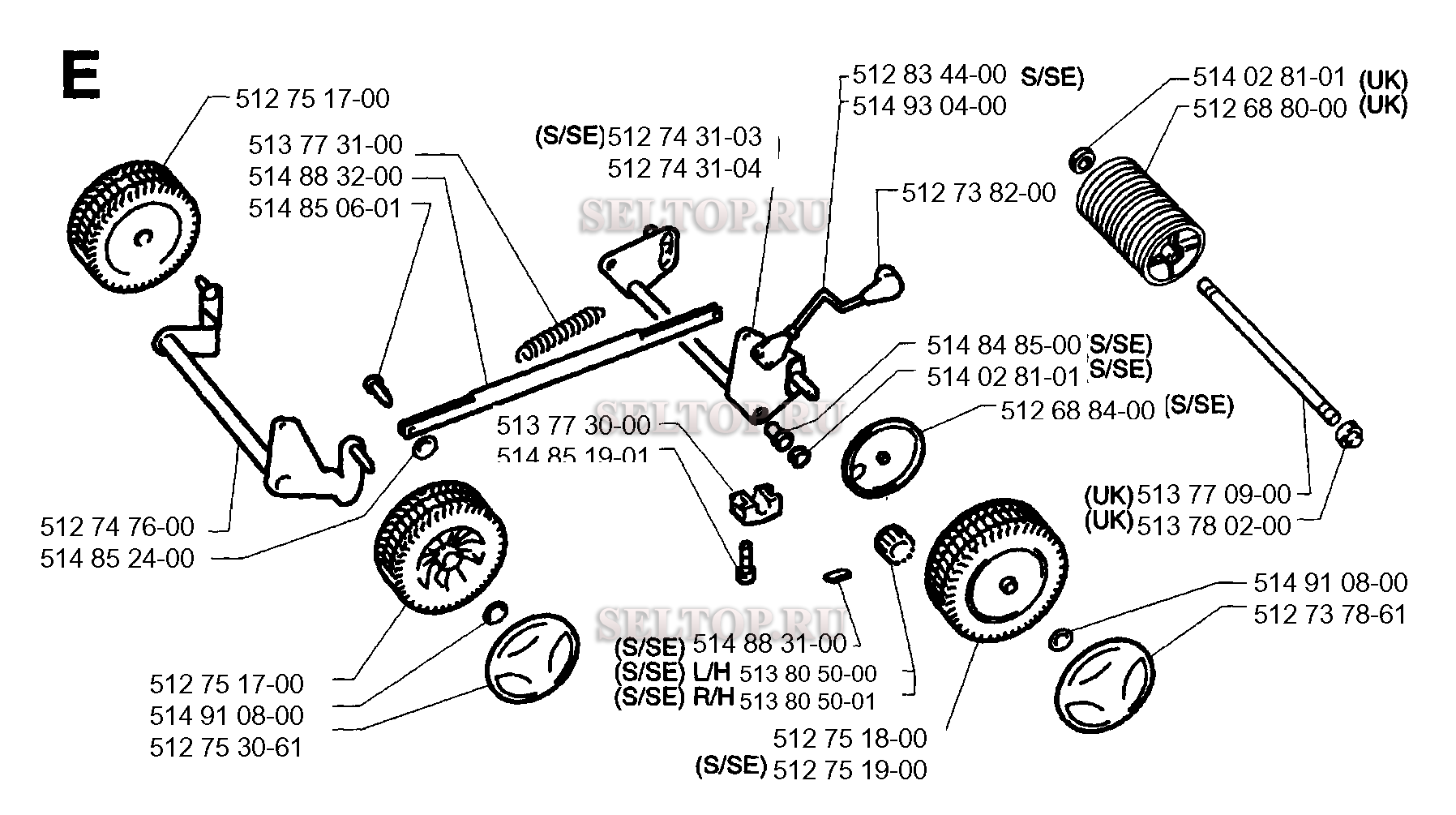 Колеса и покрышки для газонокосилки Husqvarna ROYAL 43 SE (с 1996-04)