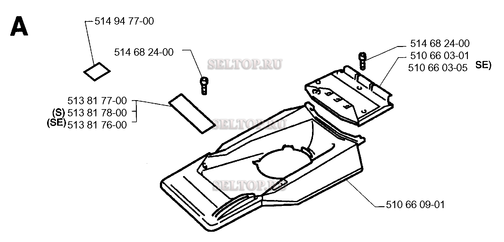 Крышка для газонокосилки Husqvarna ROYAL 43 SE (с 1996-04), взрыв-схема: