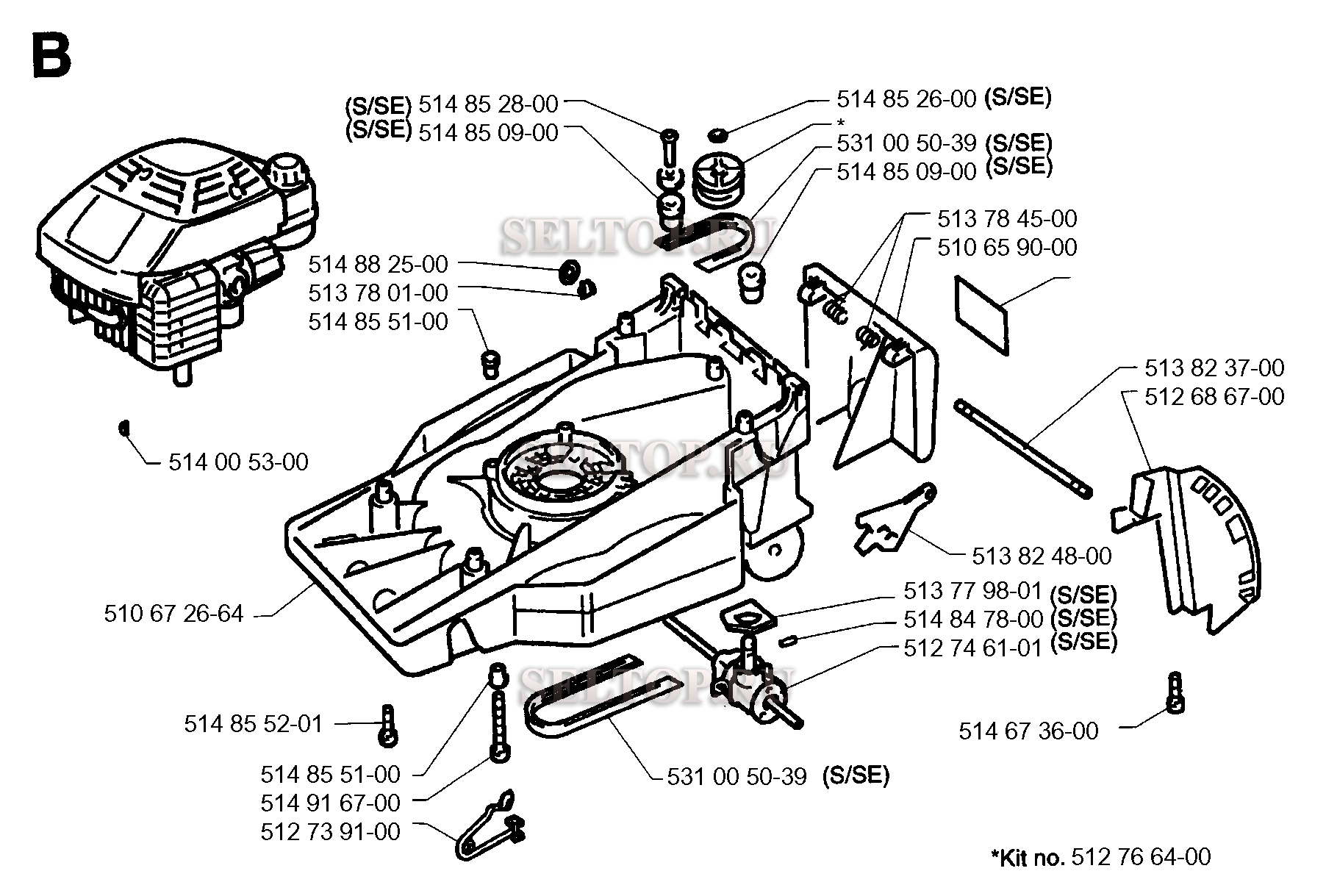 Рама и двигатель для газонокосилки Husqvarna ROYAL 43 SE (с 1996-04)