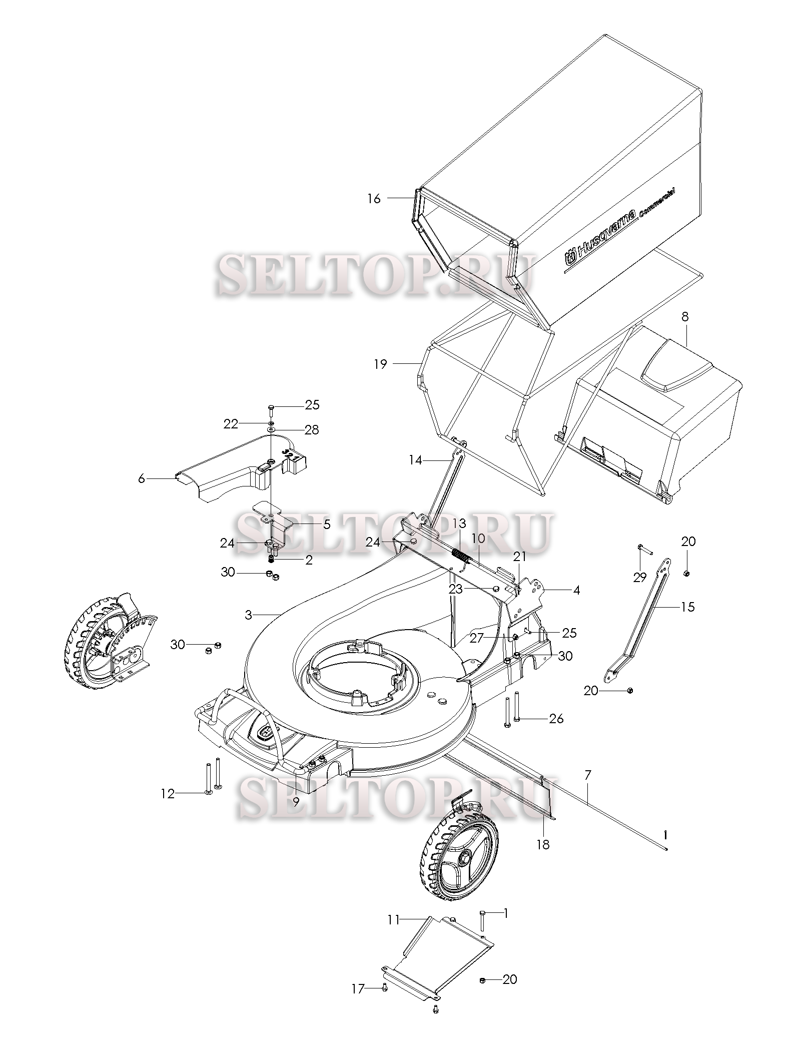 Шасси и рама для газонокосилки Husqvarna W 21 SKC артикул модели 968999639 (с 2007-03)