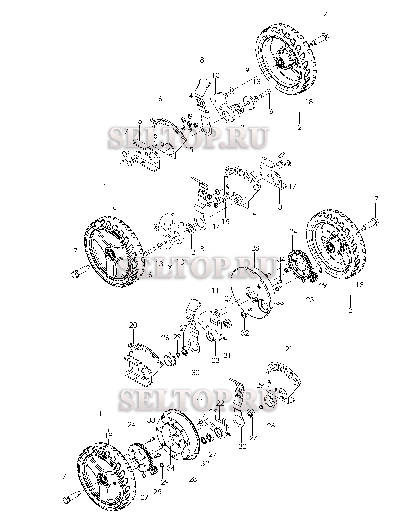Колеса и покрышки для газонокосилки Husqvarna W 53 SE артикул модели 968999289 (с 2007-03)