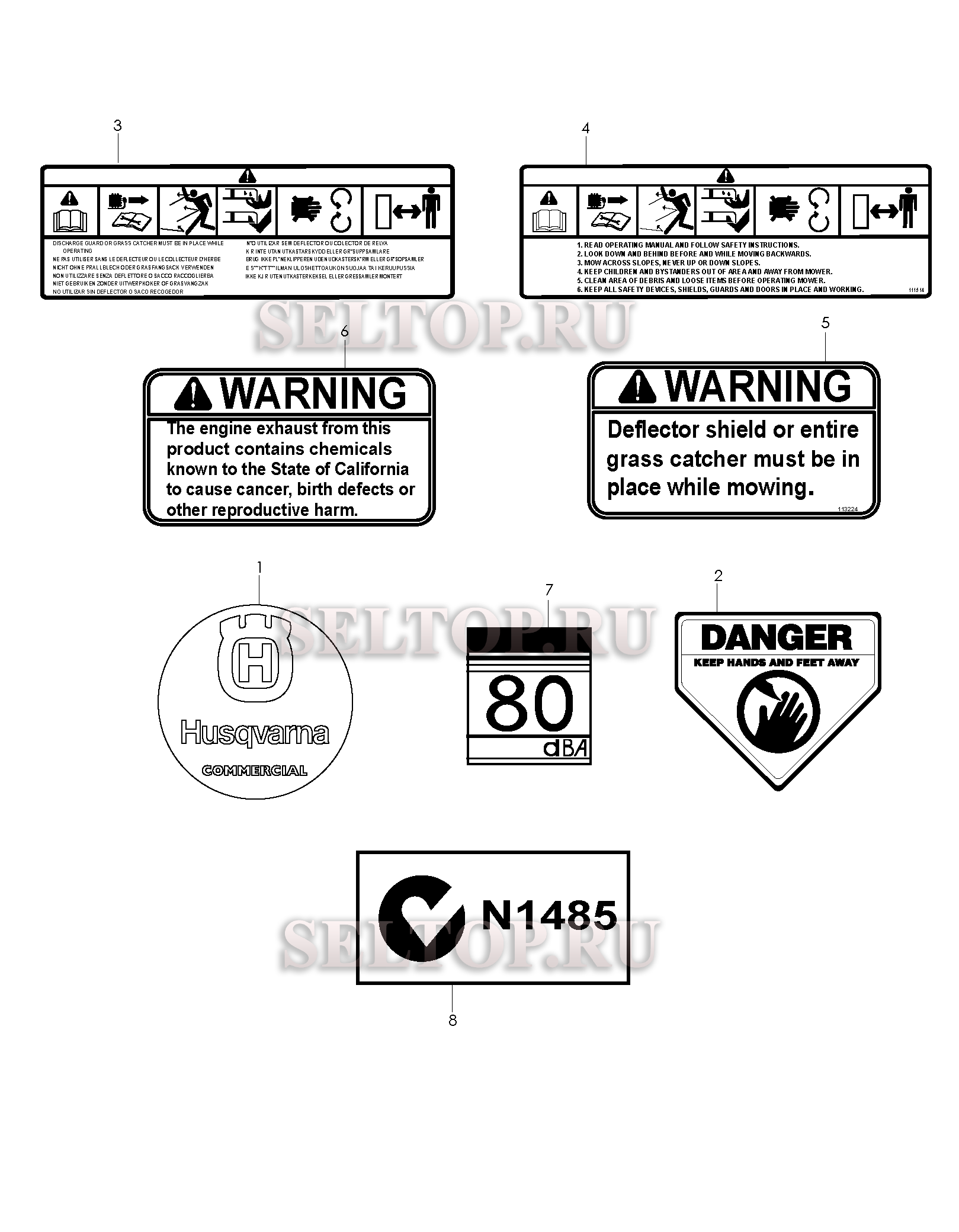 Наклейки для газонокосилки Husqvarna W 53 SE артикул модели 968999289 (с 2007-03)