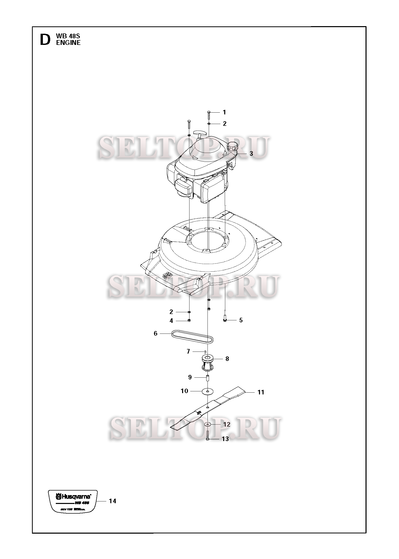 Двигатель для газонокосилки Husqvarna WB 48 S артикул модели 96697800204 (с 2012-01), взрыв-схема: