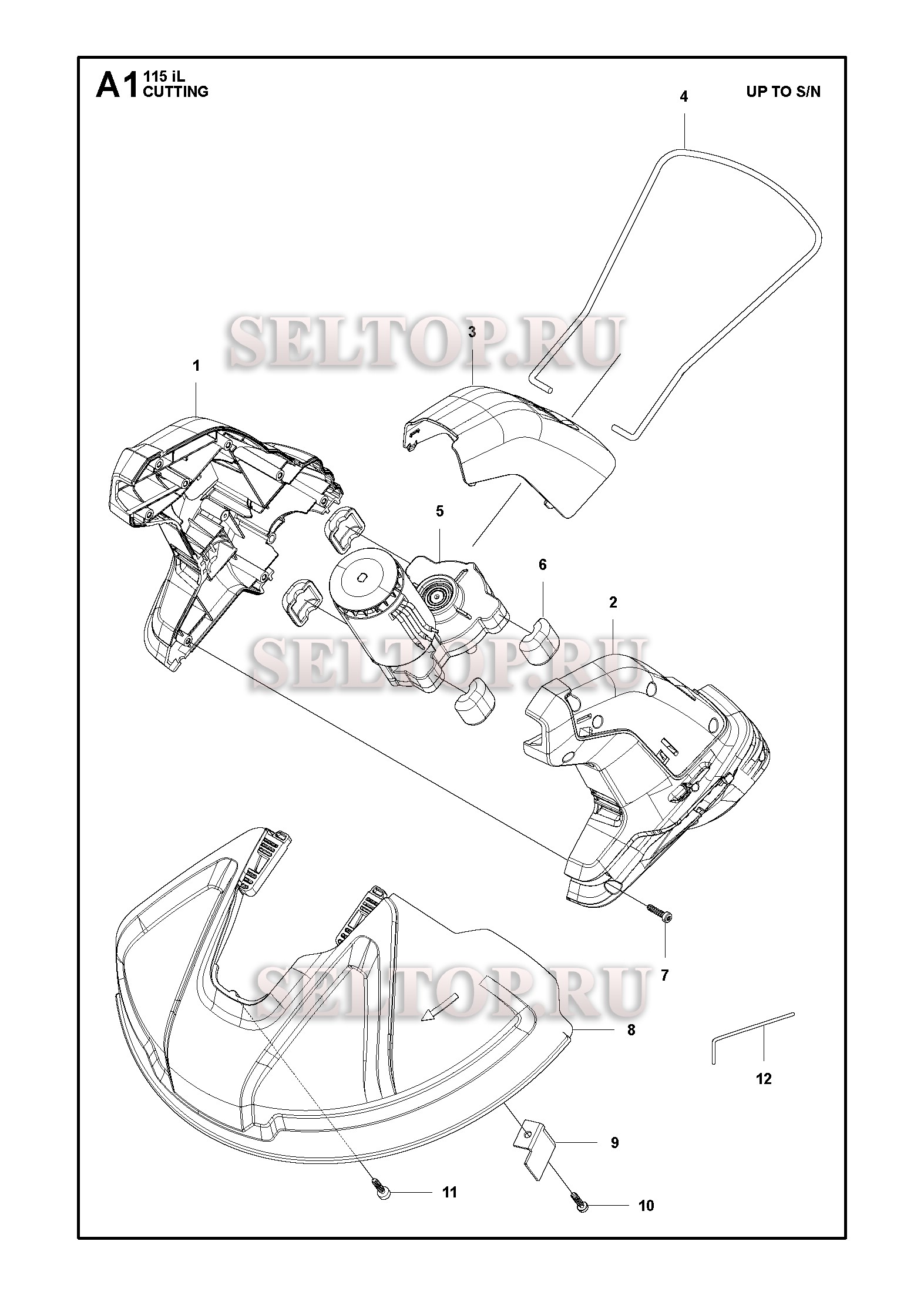 Режущая часть для триммера Husqvarna 115iL (артикул модели 967098801) (с 2018-02), взрыв-схема: