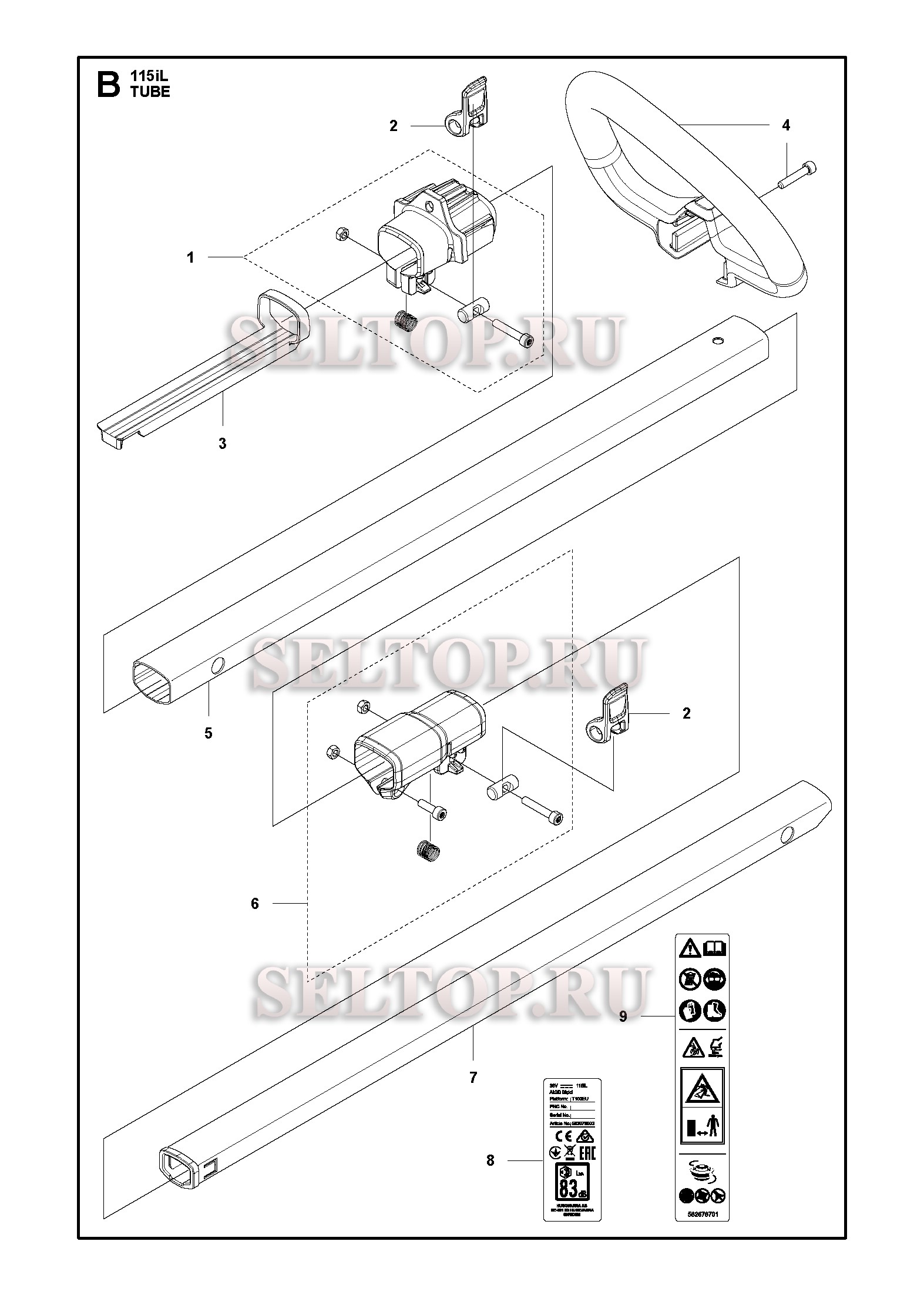 Трубка вала для триммера Husqvarna 115iL (артикул модели 967098802) (с 2017-01), взрыв-схема: