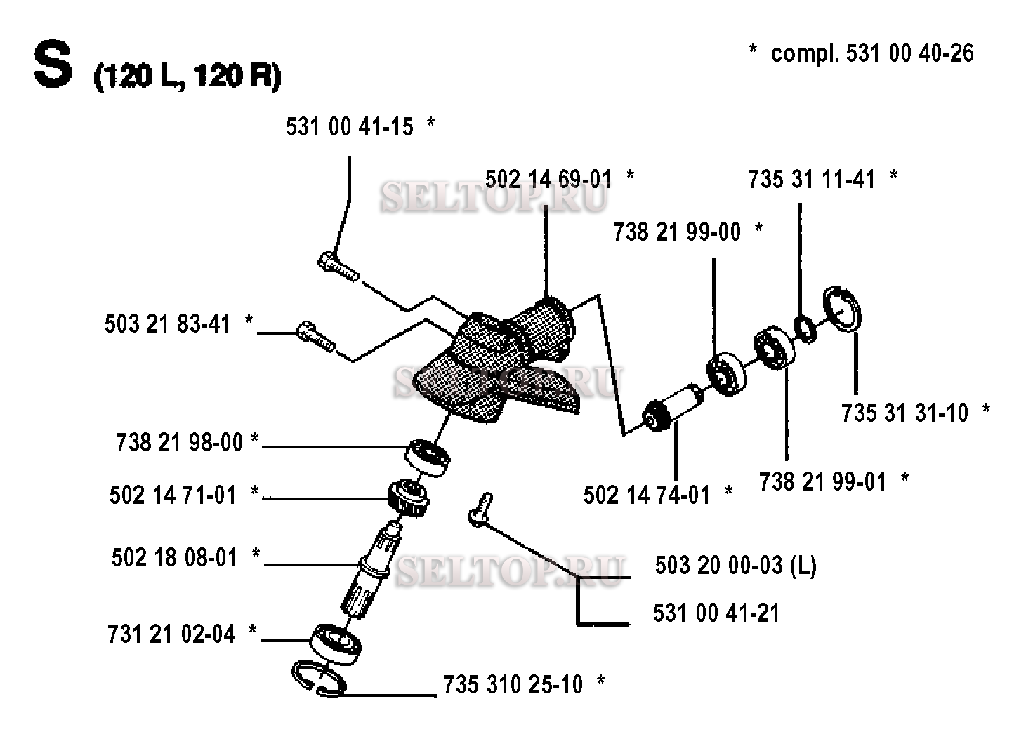 Редуктор (вариант 3) для триммера Husqvarna 120 R (c 1993-02), взрыв-схема: