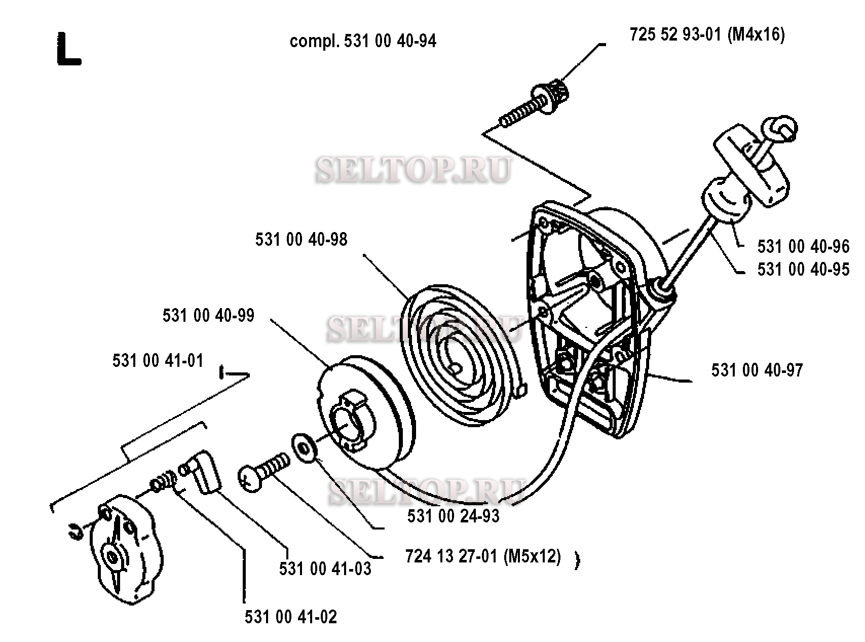 Стартер для триммера Husqvarna 120 R (c 1993-02), взрыв-схема: