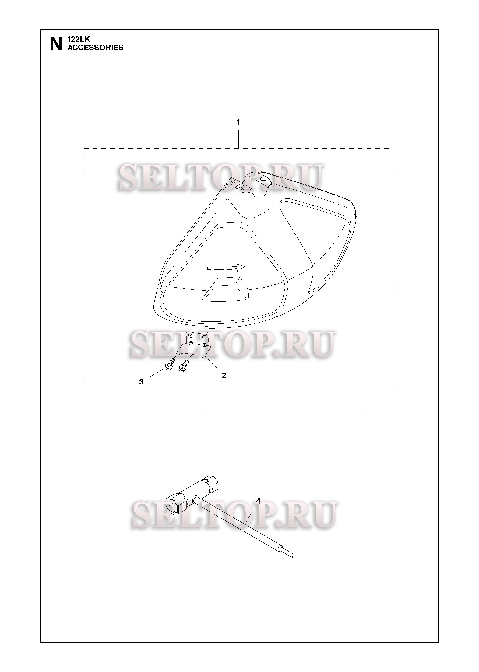 Аксессуары для триммера Husqvarna 122 LK (артикул модели 967252801), взрыв-схема: