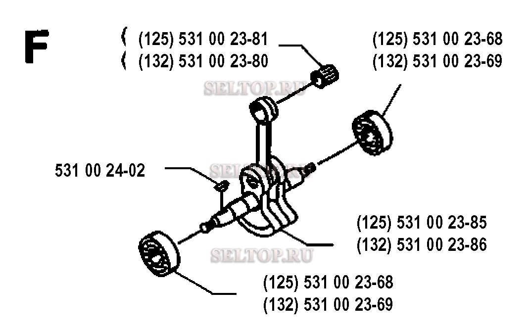 Коленвал для триммера Husqvarna 125 L (с 1993-04), взрыв-схема: