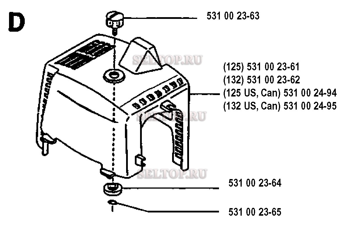 Крышка цилиндра для триммера Husqvarna 125 L (с 1993-04), взрыв-схема: