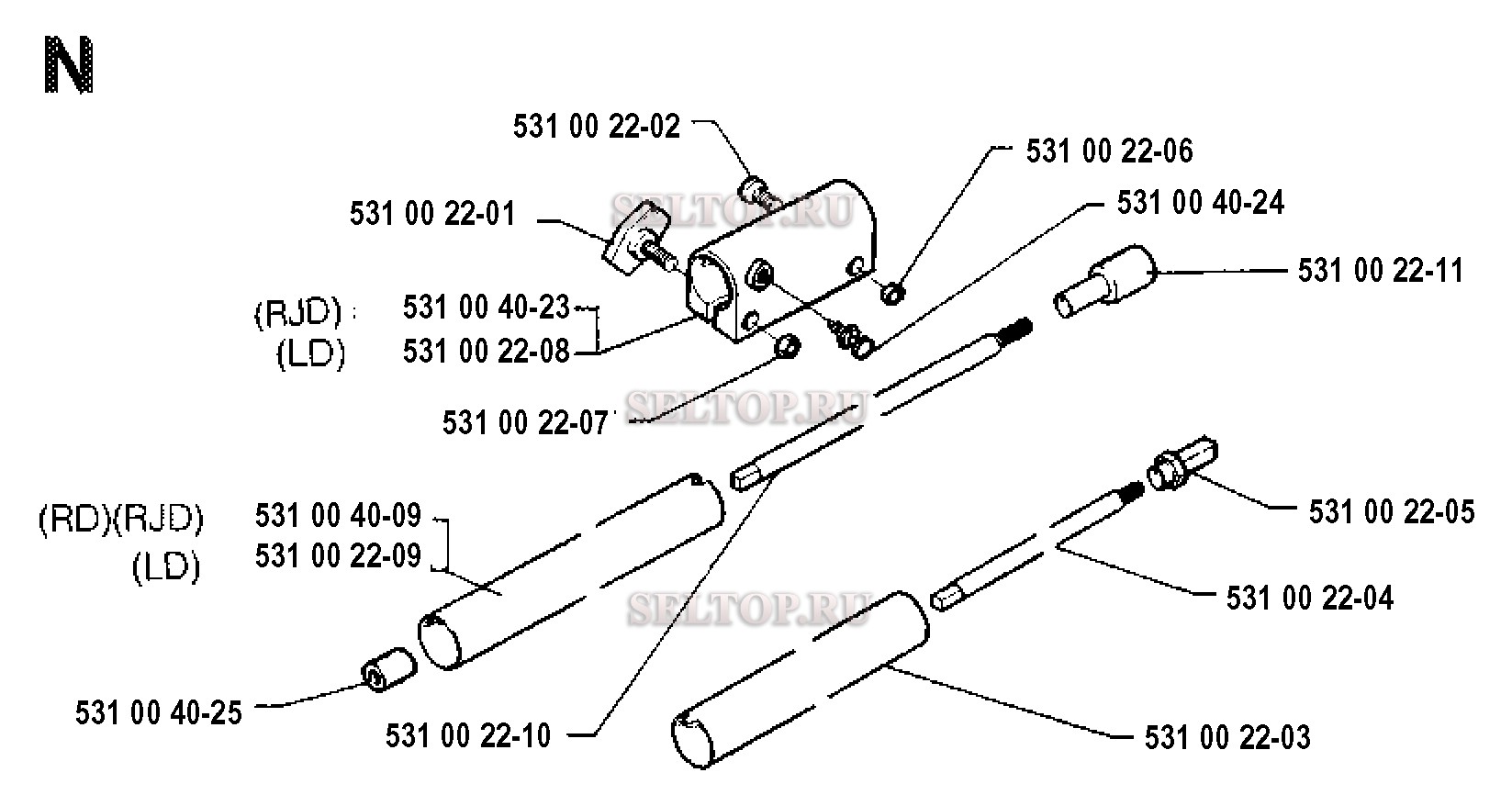 Ведущий вал для триммера Husqvarna 125 L (с 1993-04) (вариант 4), взрыв-схема: