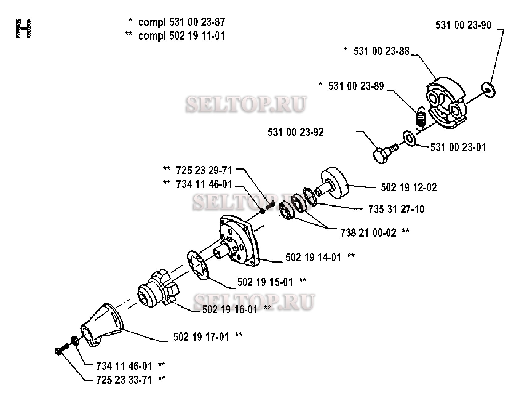 Сцепление для триммера Husqvarna 125 LD (с 1990-11), взрыв-схема: