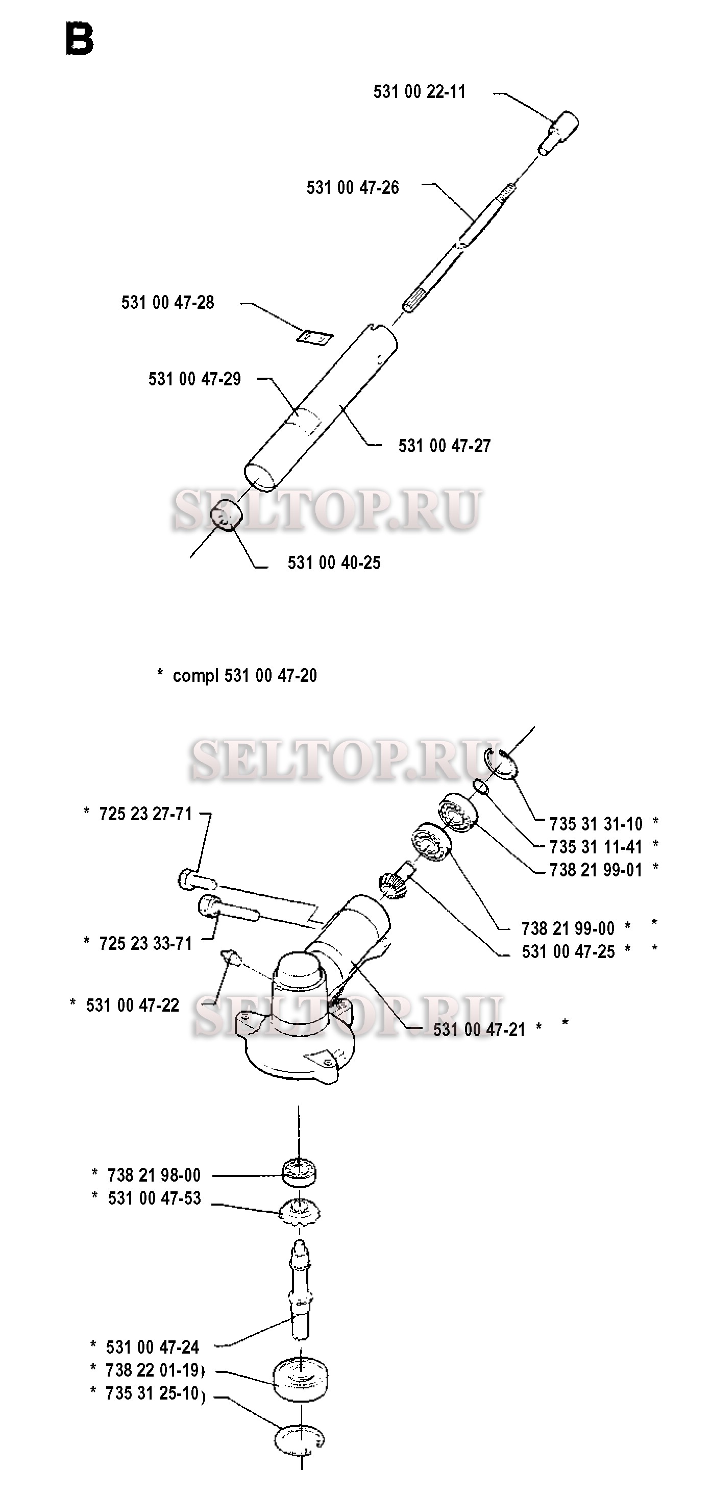 Вал привода, редуктор для триммера Husqvarna 125 LD (с 1993-05), взрыв-схема: