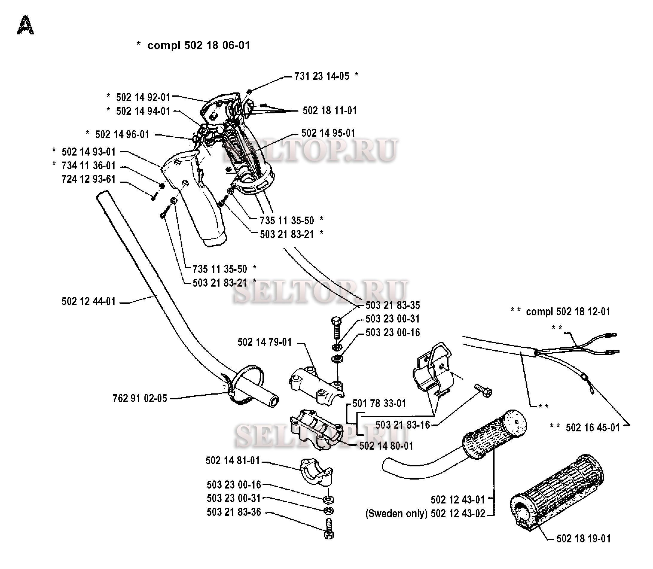Ручка, рычаги управления для триммера Husqvarna 132 LD (с 1990-11)
