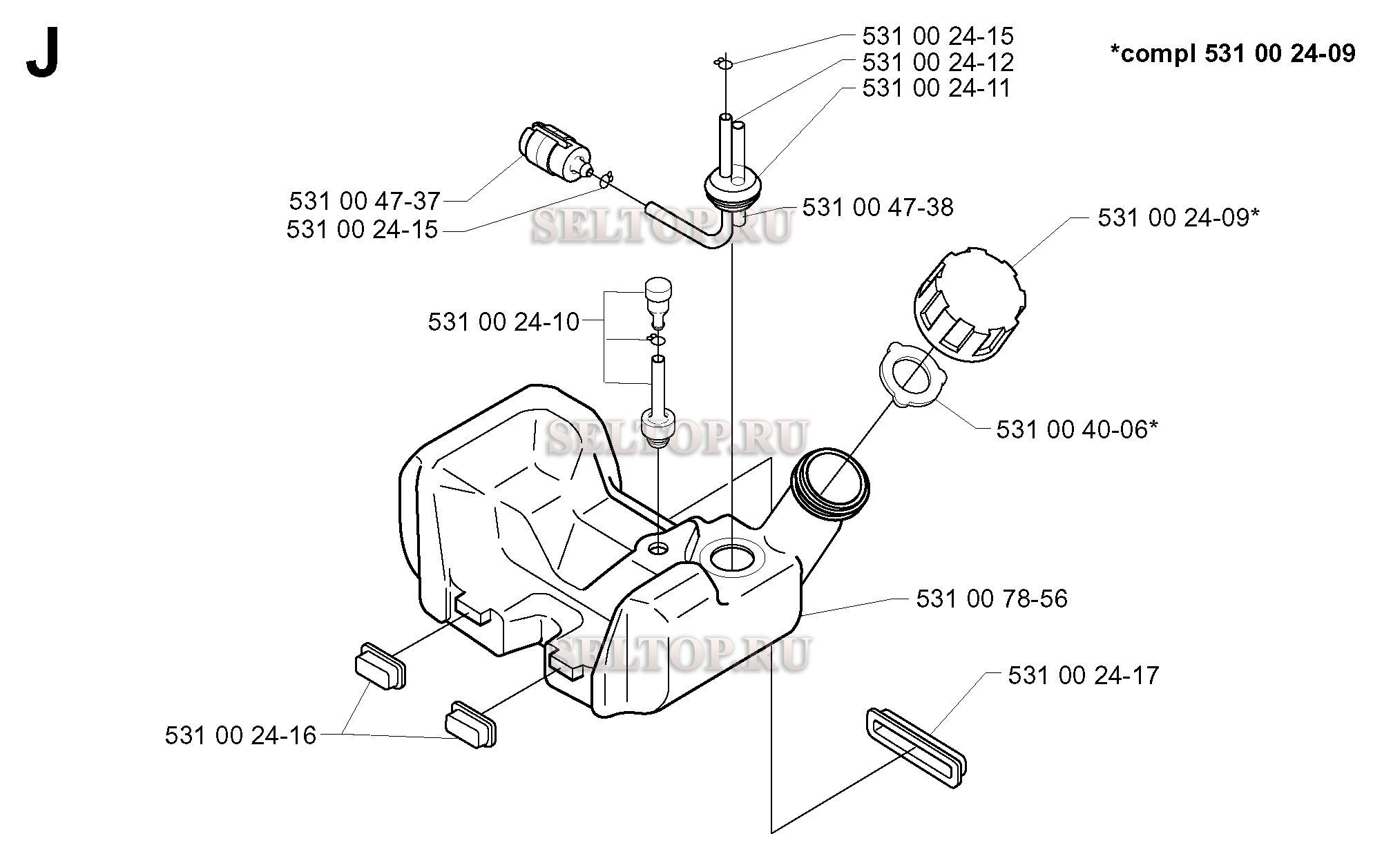 Топливный бак для триммера Husqvarna 132 R (c 1999-10), взрыв-схема: