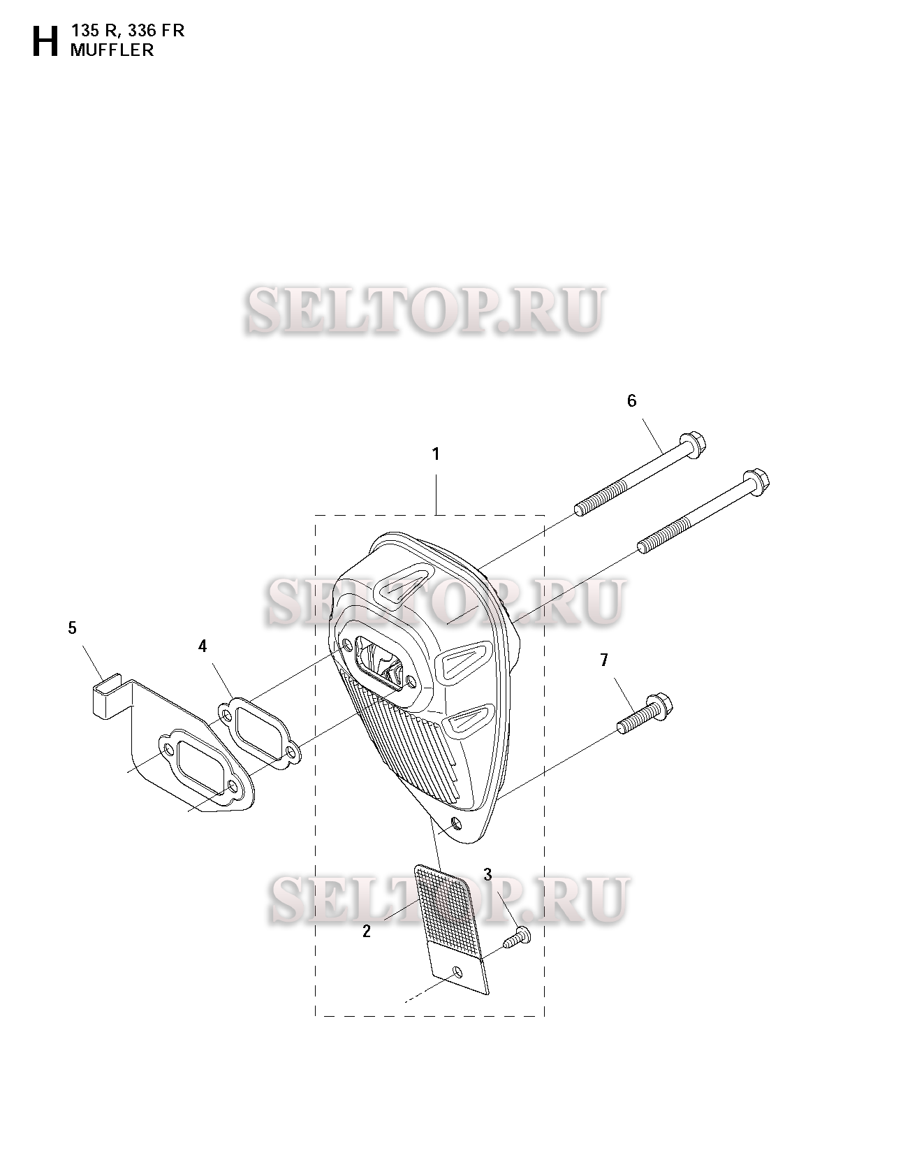 Глушитель для триммера Husqvarna 135 R, взрыв-схема: