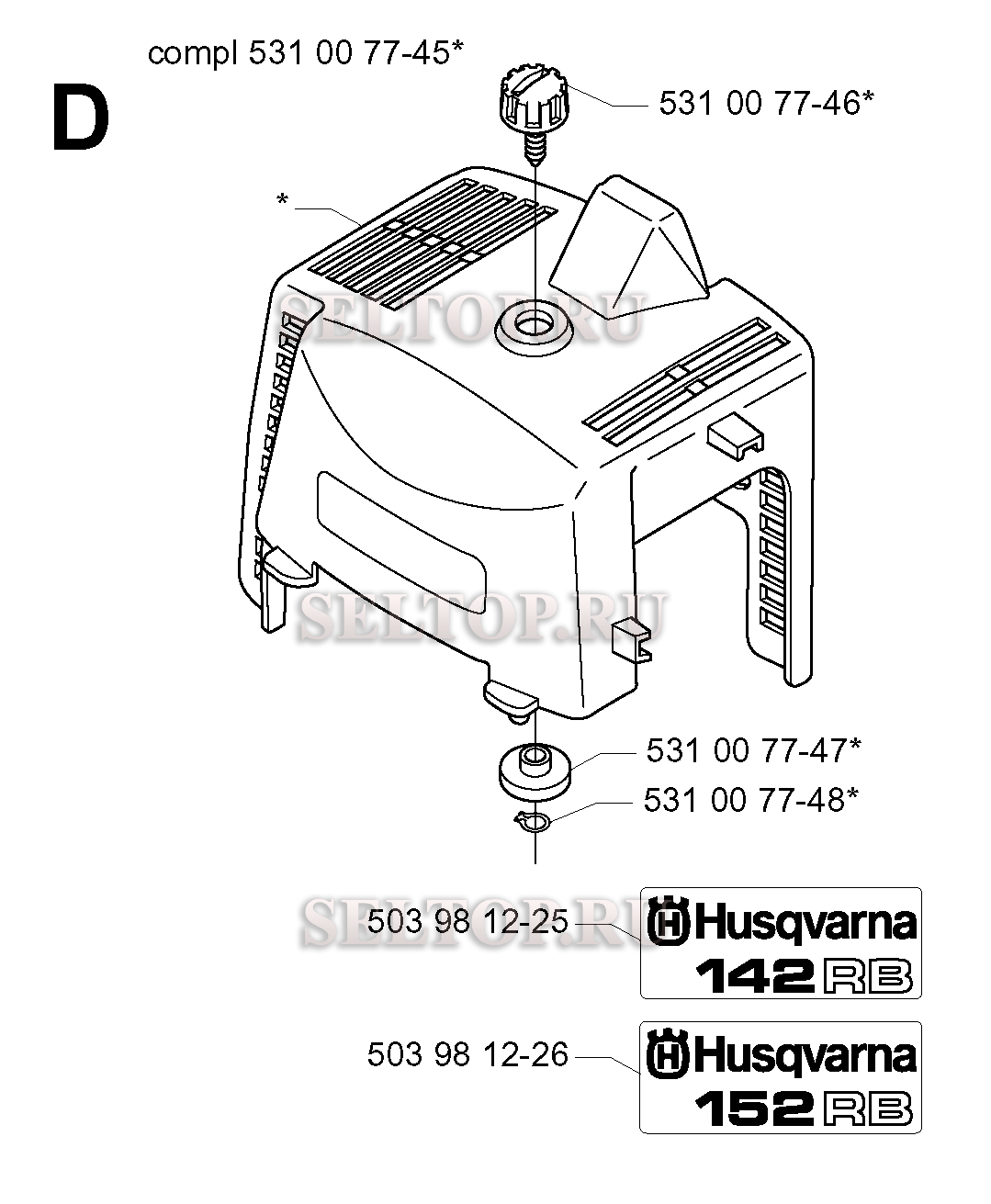 Крышка цилиндра для триммера Husqvarna 142 RB (c 2000-05), взрыв-схема: