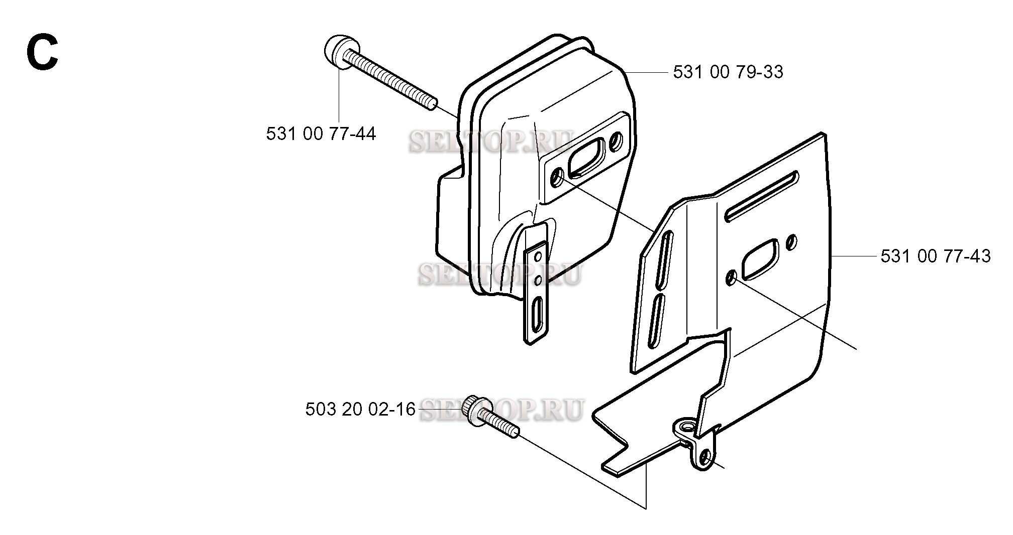 Глушитель для триммера Husqvarna 142 RJ (c 2003-01), взрыв-схема:
