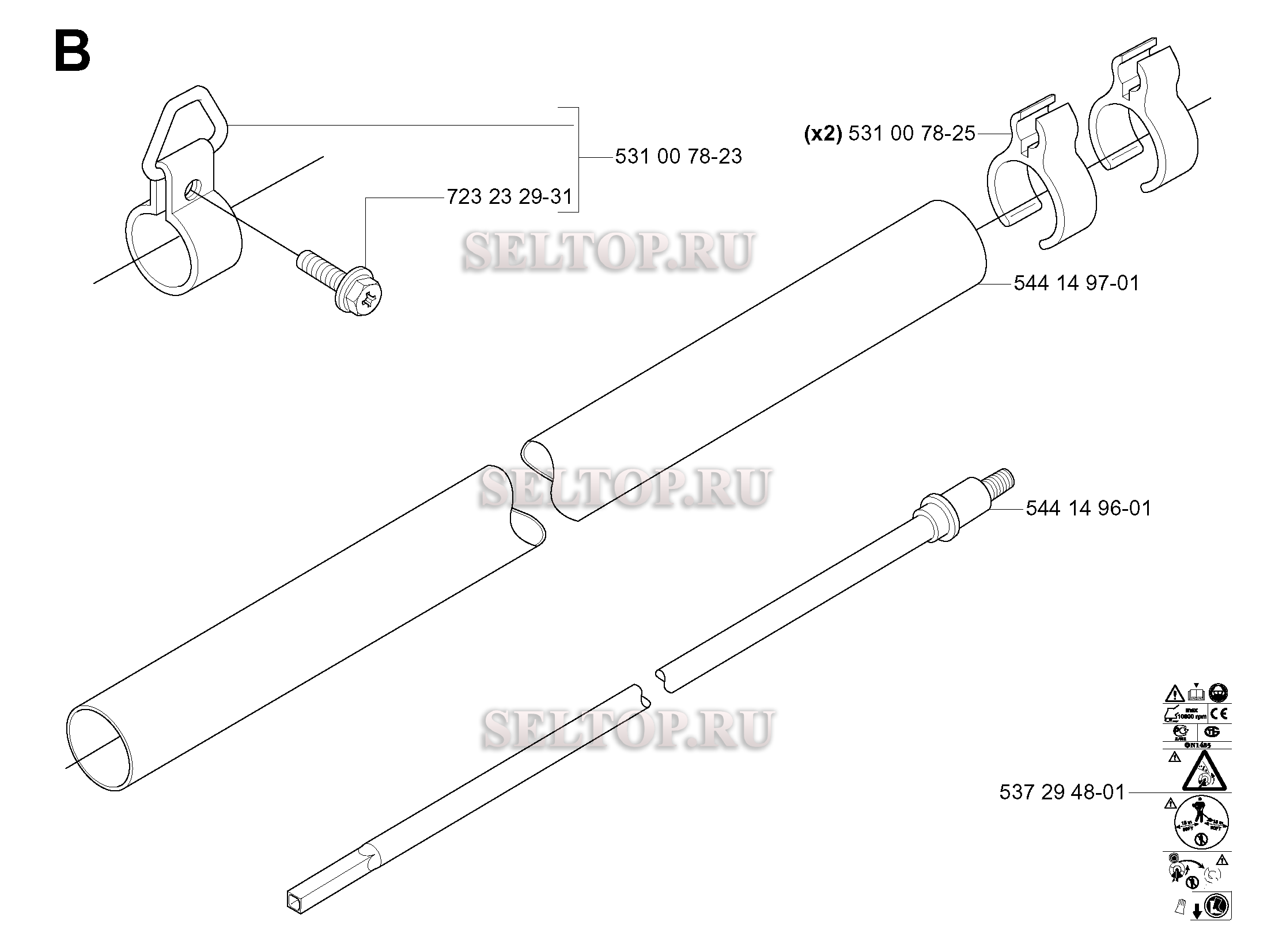 Ведущий вал для триммера Husqvarna 143 R (c 2005-10), взрыв-схема: