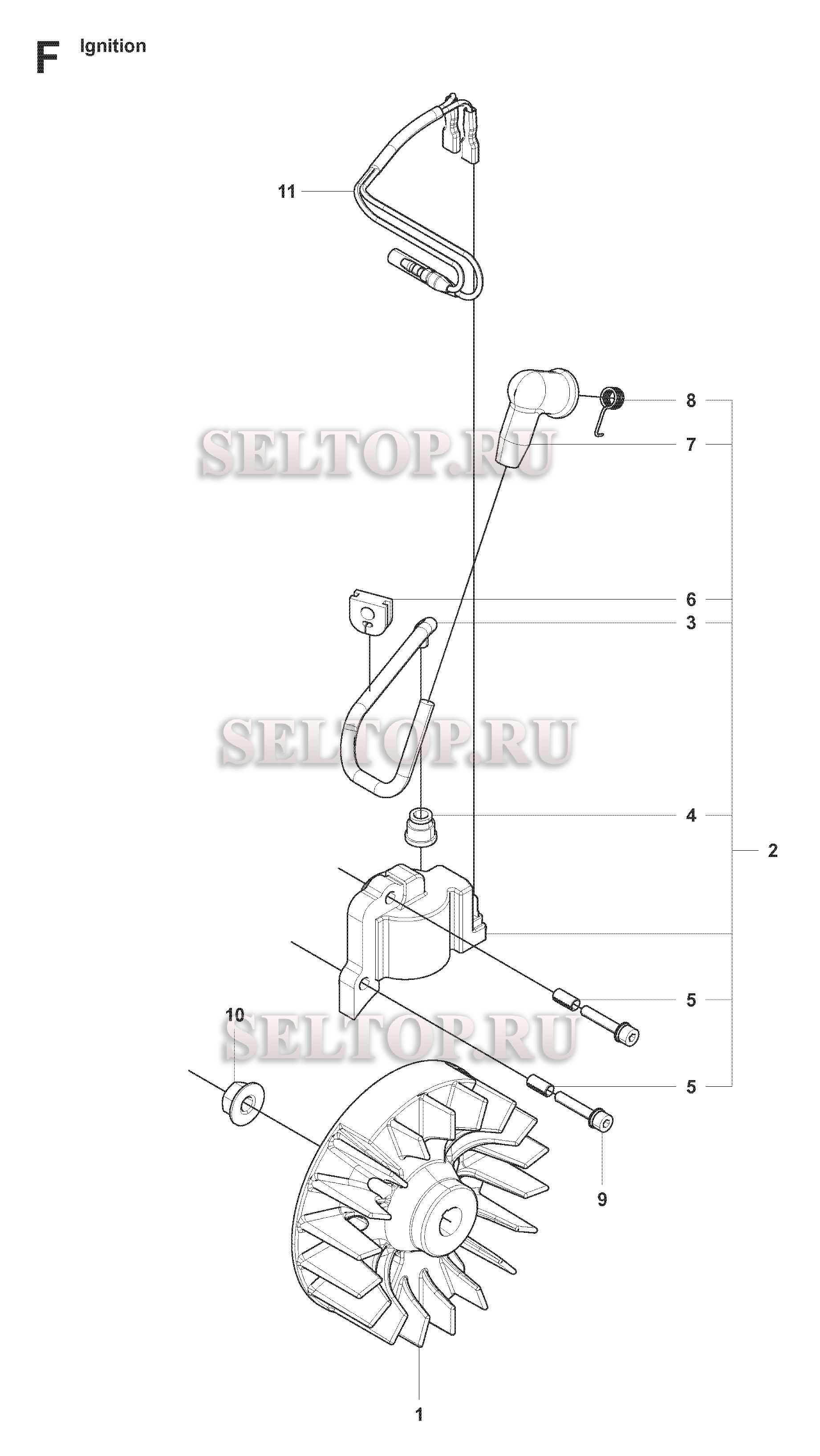 Зажигание для триммера Husqvarna 143 RII (c 2008-06), взрыв-схема: