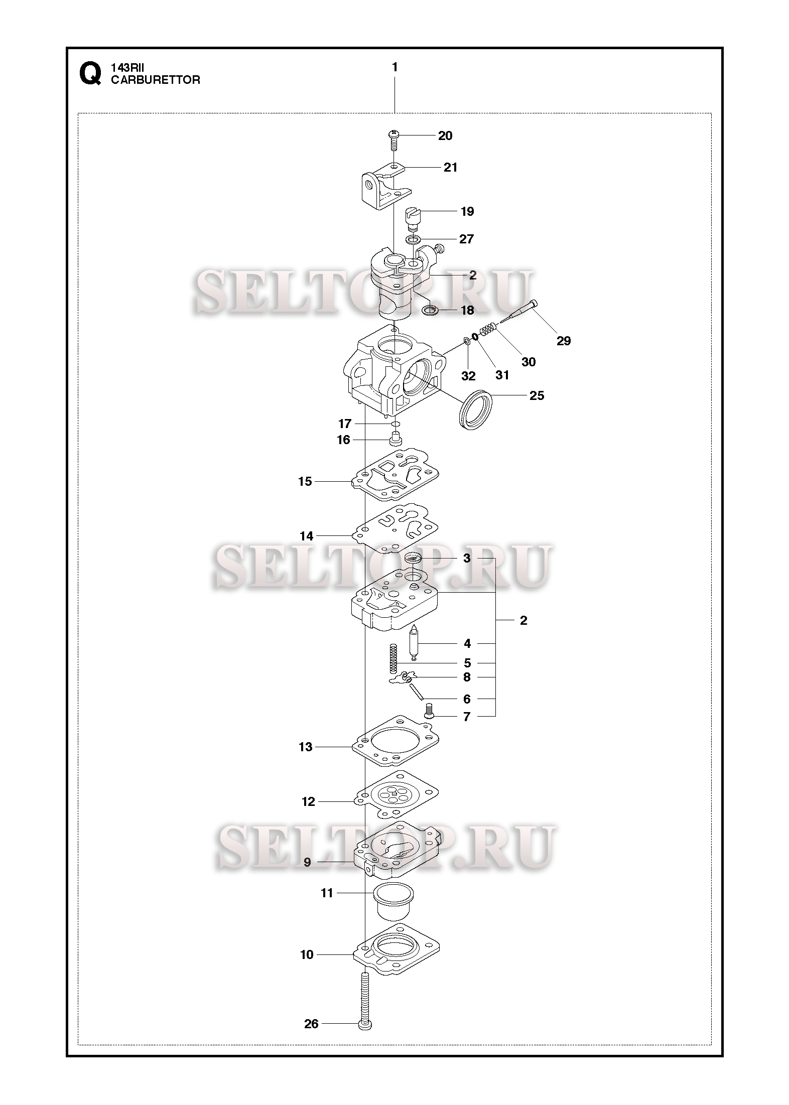 Карбюратор для триммера Husqvarna 143 RII (c 2009-01), взрыв-схема: