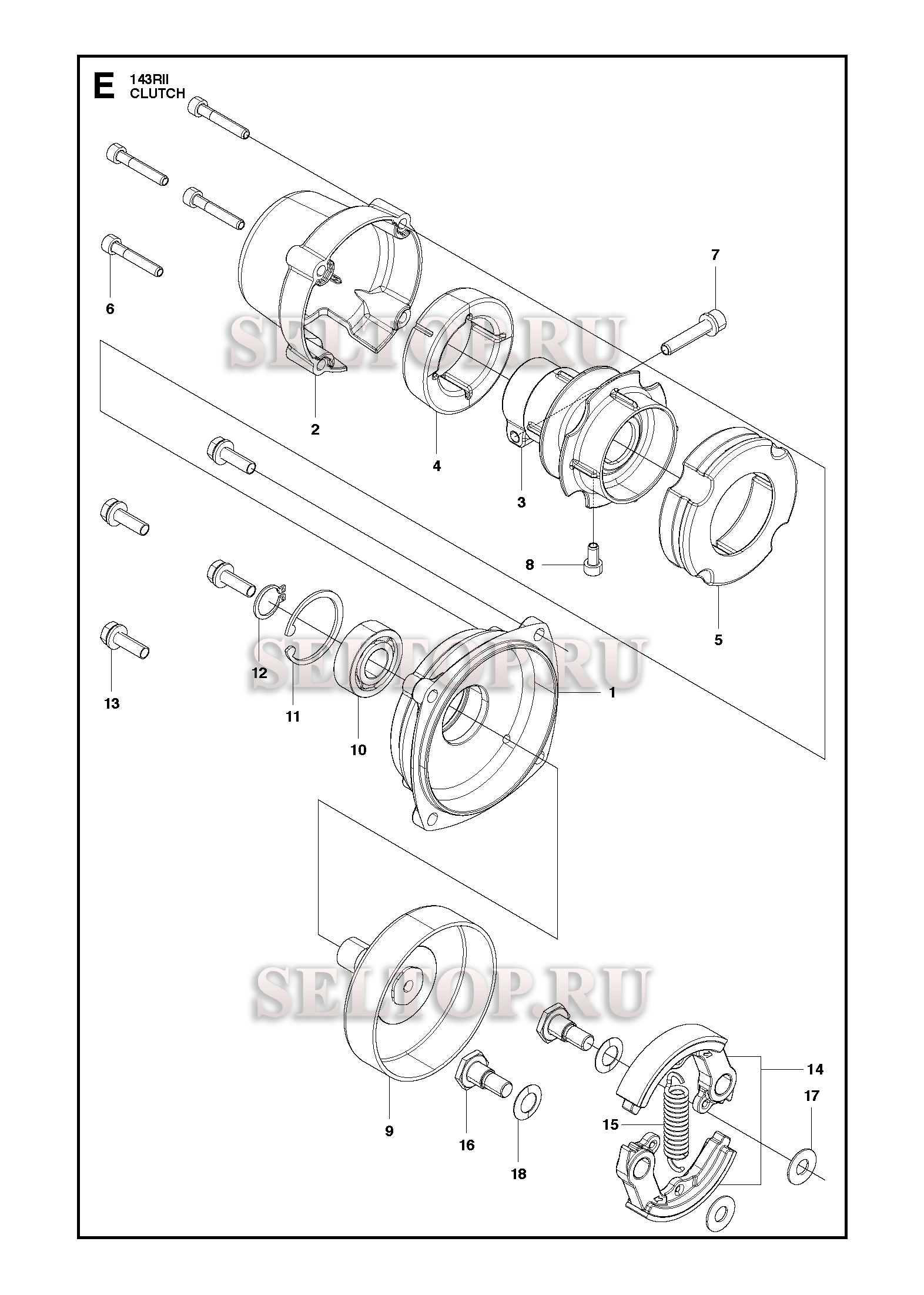 Сцепление для триммера Husqvarna 143 RII (c 2009-01), взрыв-схема:
