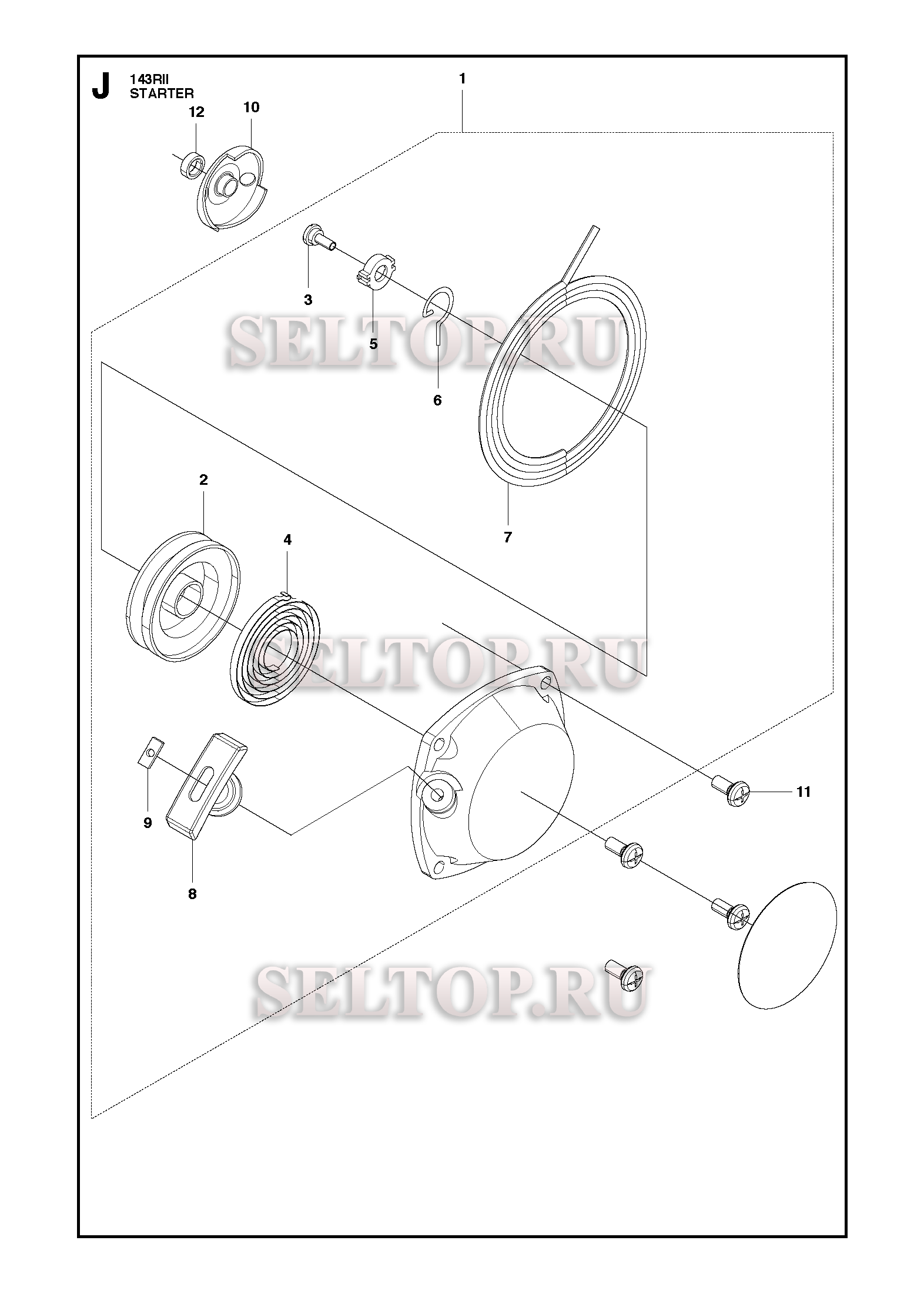 Стартер для триммера Husqvarna 143 RII (c 2009-01), взрыв-схема: