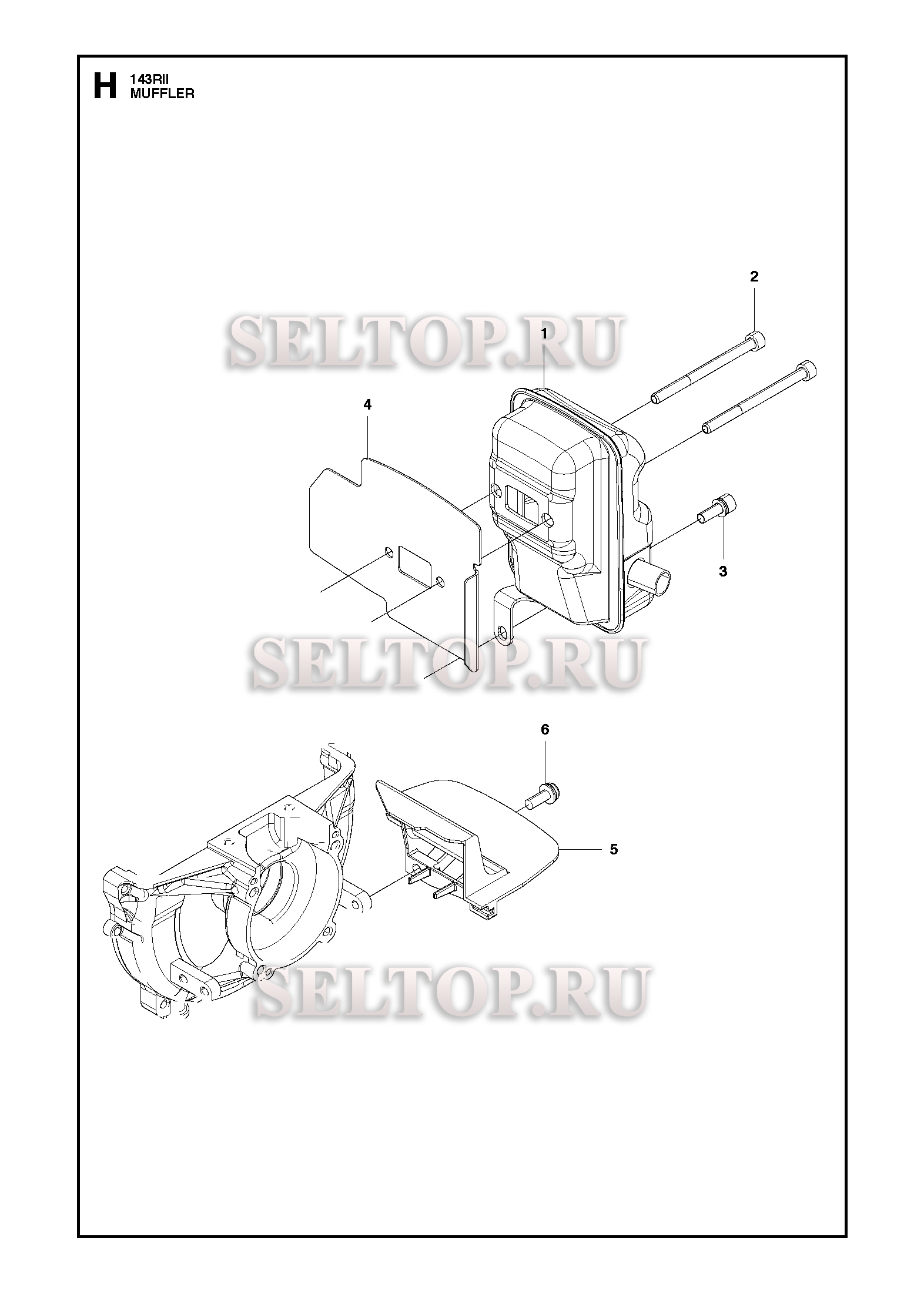 Глушитель для триммера Husqvarna 143 RII (c 2014-09), взрыв-схема: