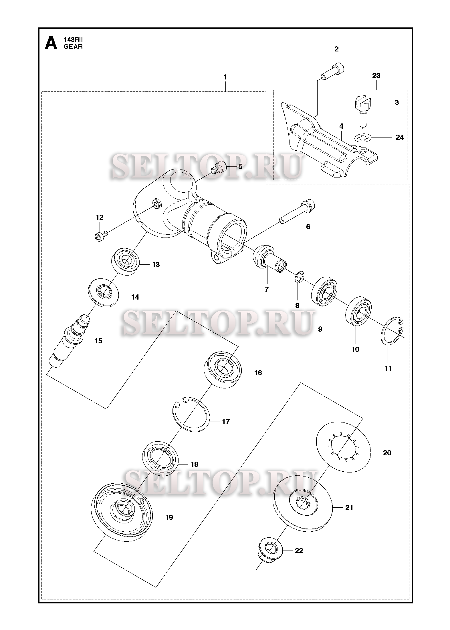 Редуктор, запчасти редуктора для триммера Husqvarna 143 RII (c 2014-09)