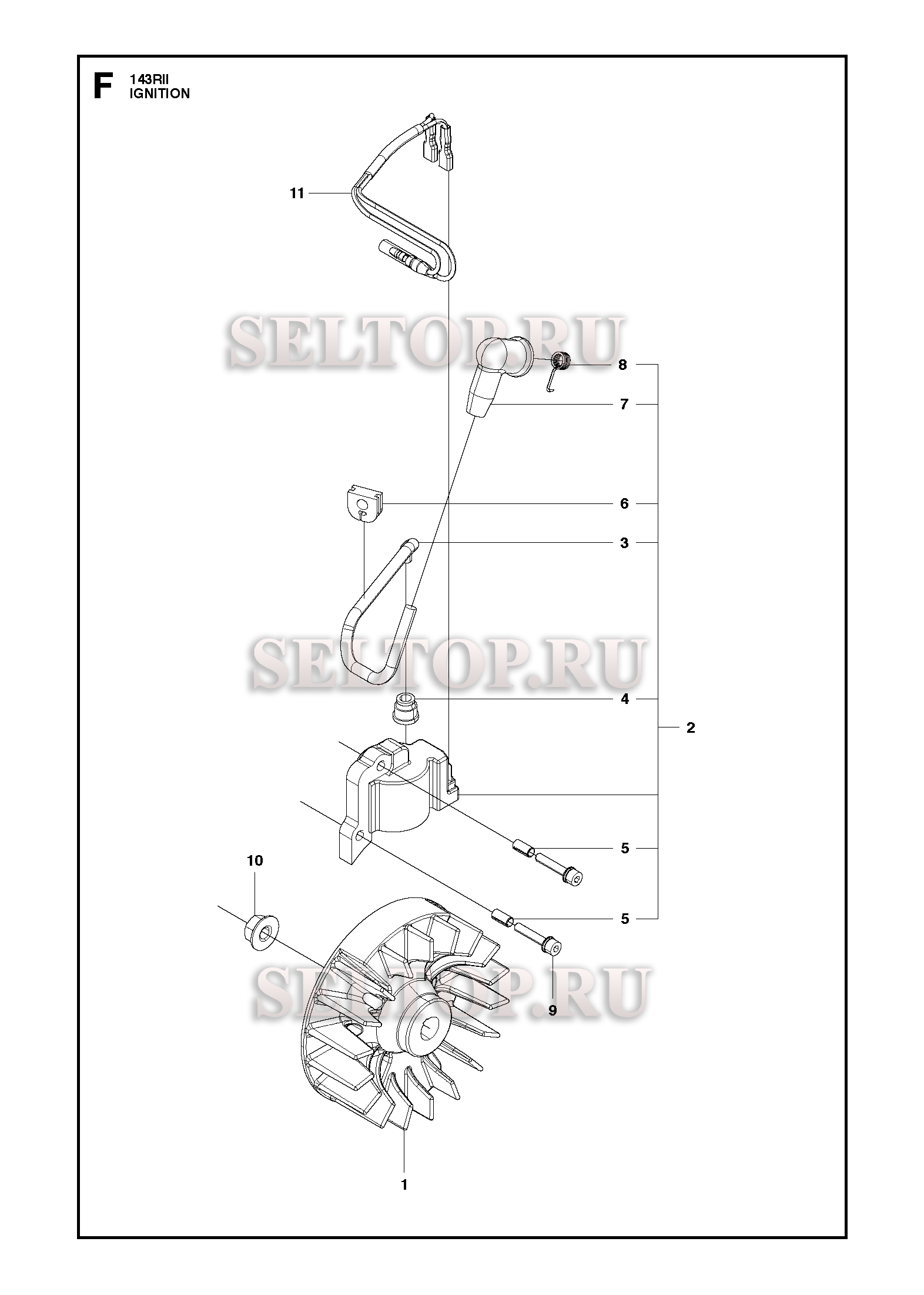 Зажигание для триммера Husqvarna 143 RII (c 2014-09), взрыв-схема: