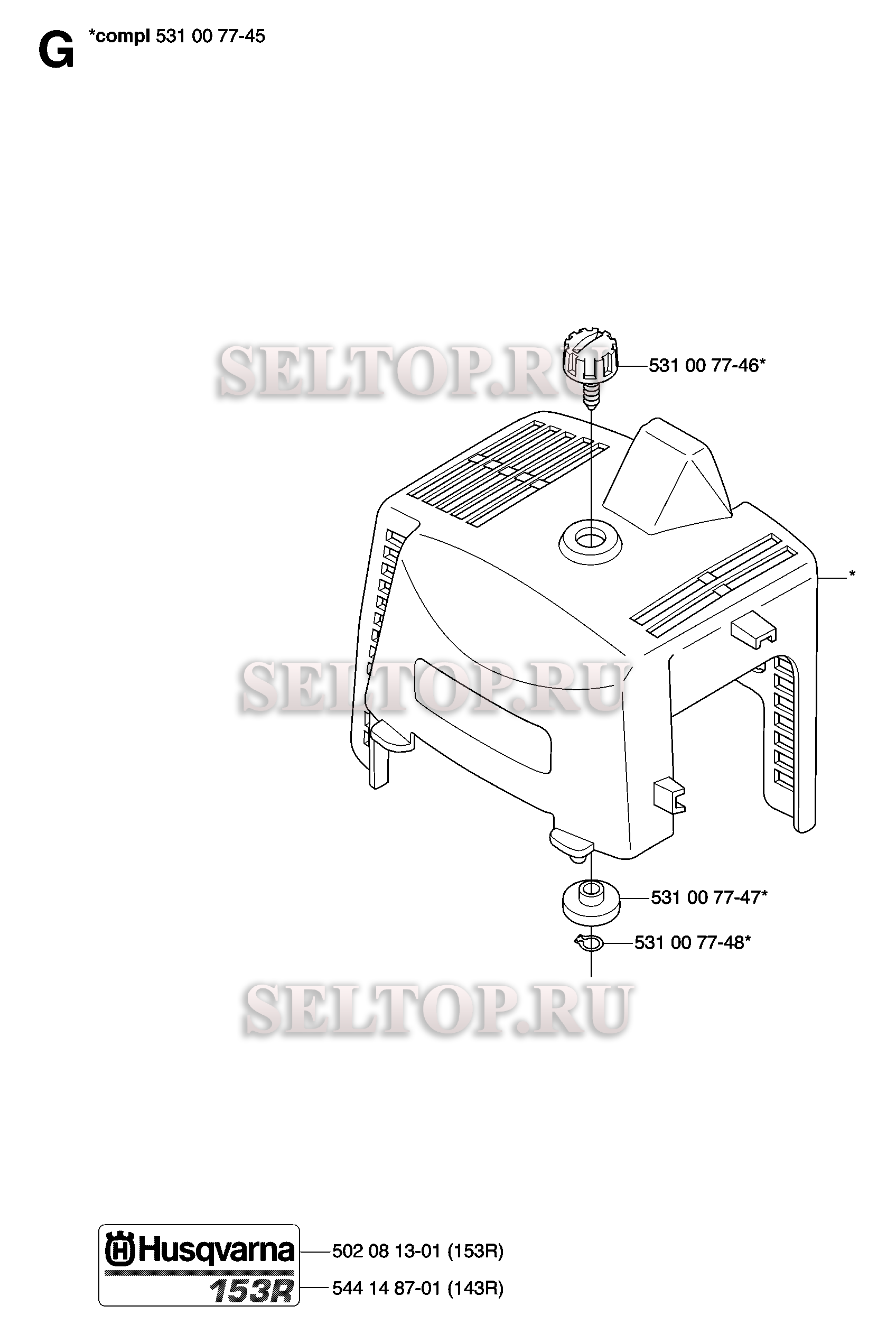 Крышка цилиндра для триммера Husqvarna 153 R (c 2007-01), взрыв-схема: