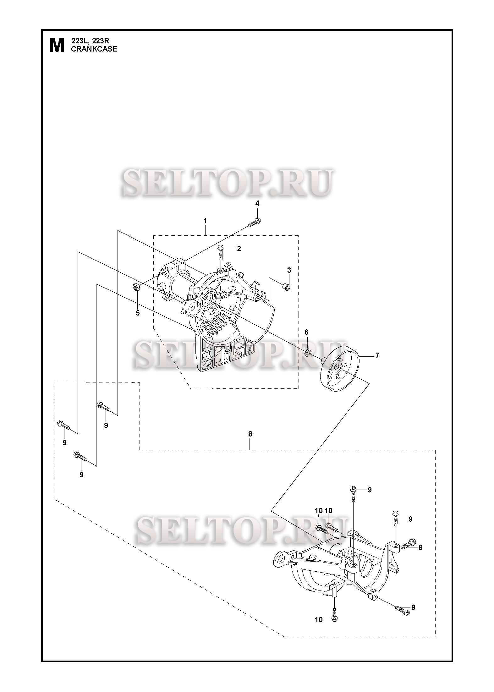 Картер для триммера Husqvarna 223 L (c 2006-01), взрыв-схема: