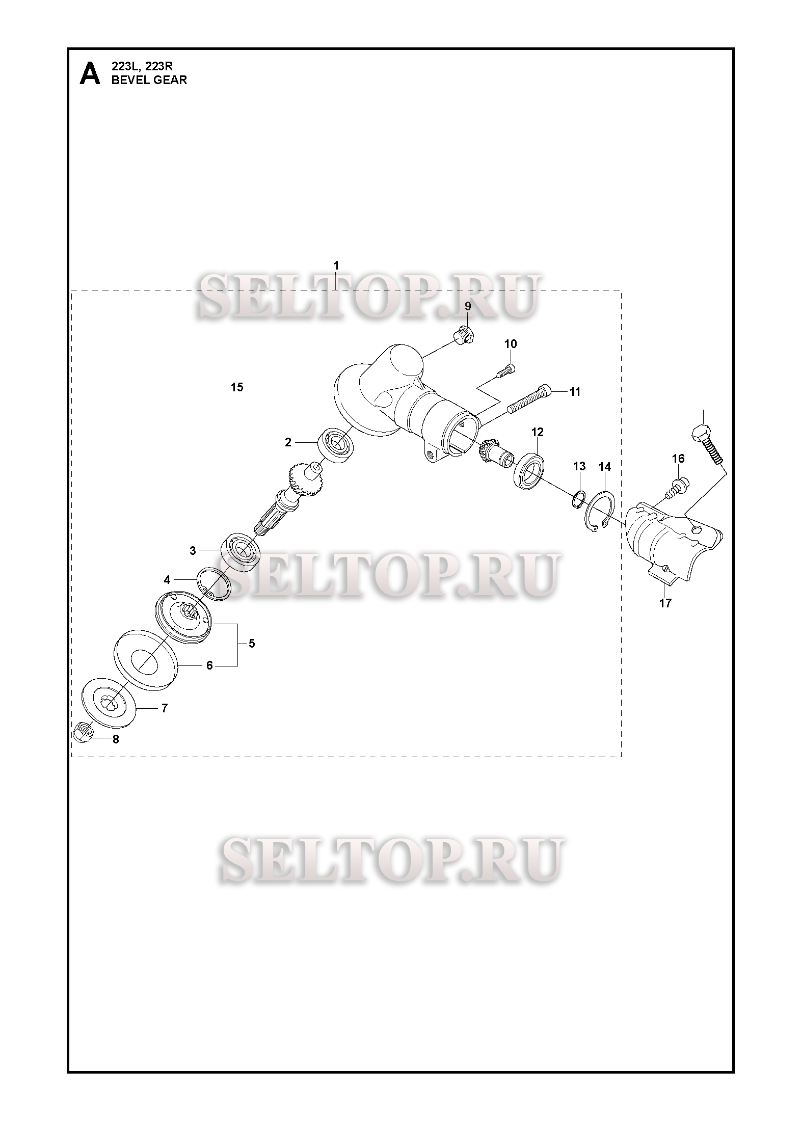 Редуктор для триммера Husqvarna 223 L (c 2006-01), взрыв-схема: