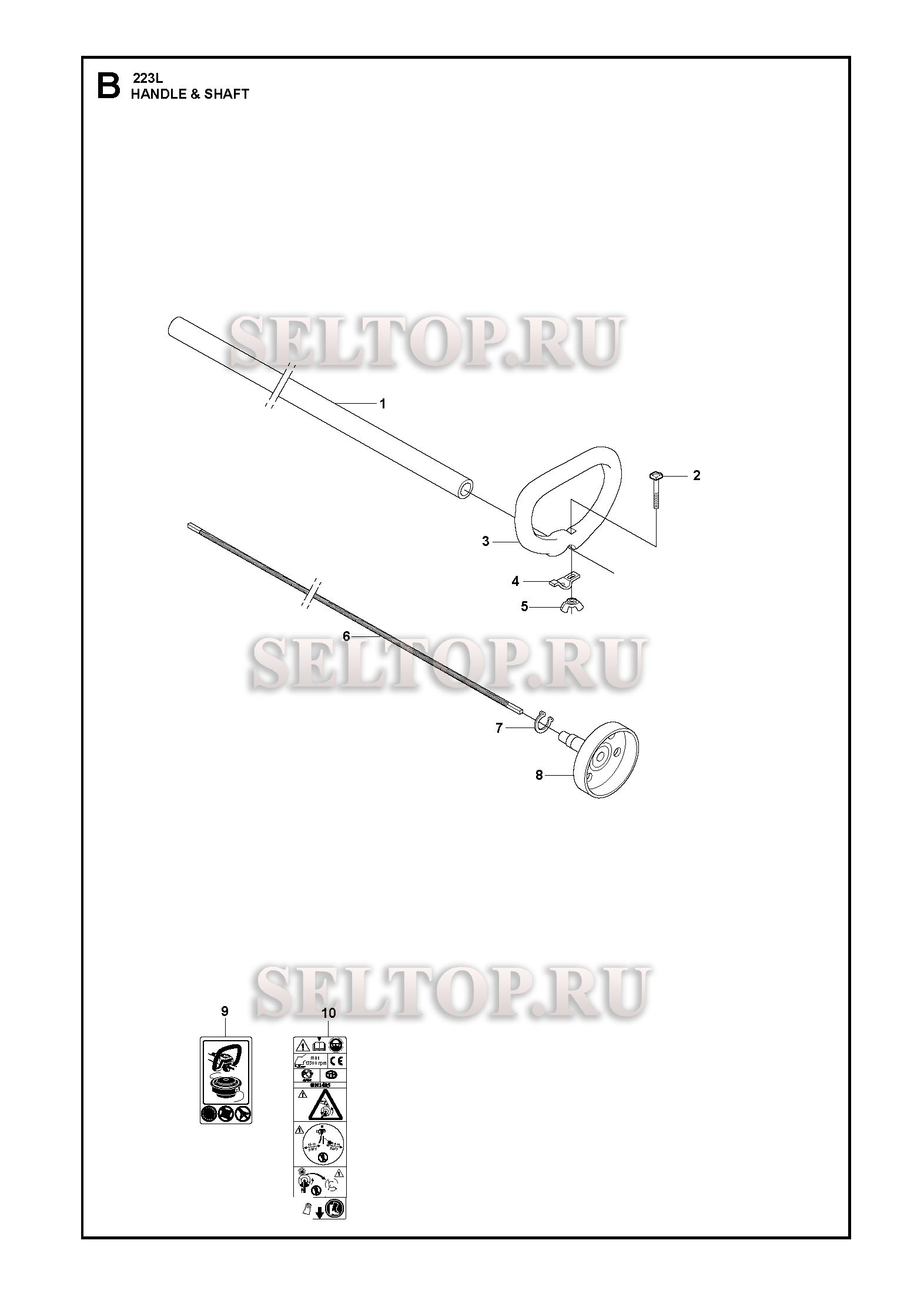 Вал привода, ручка для триммера Husqvarna 223 L (c 2006-01), взрыв-схема: