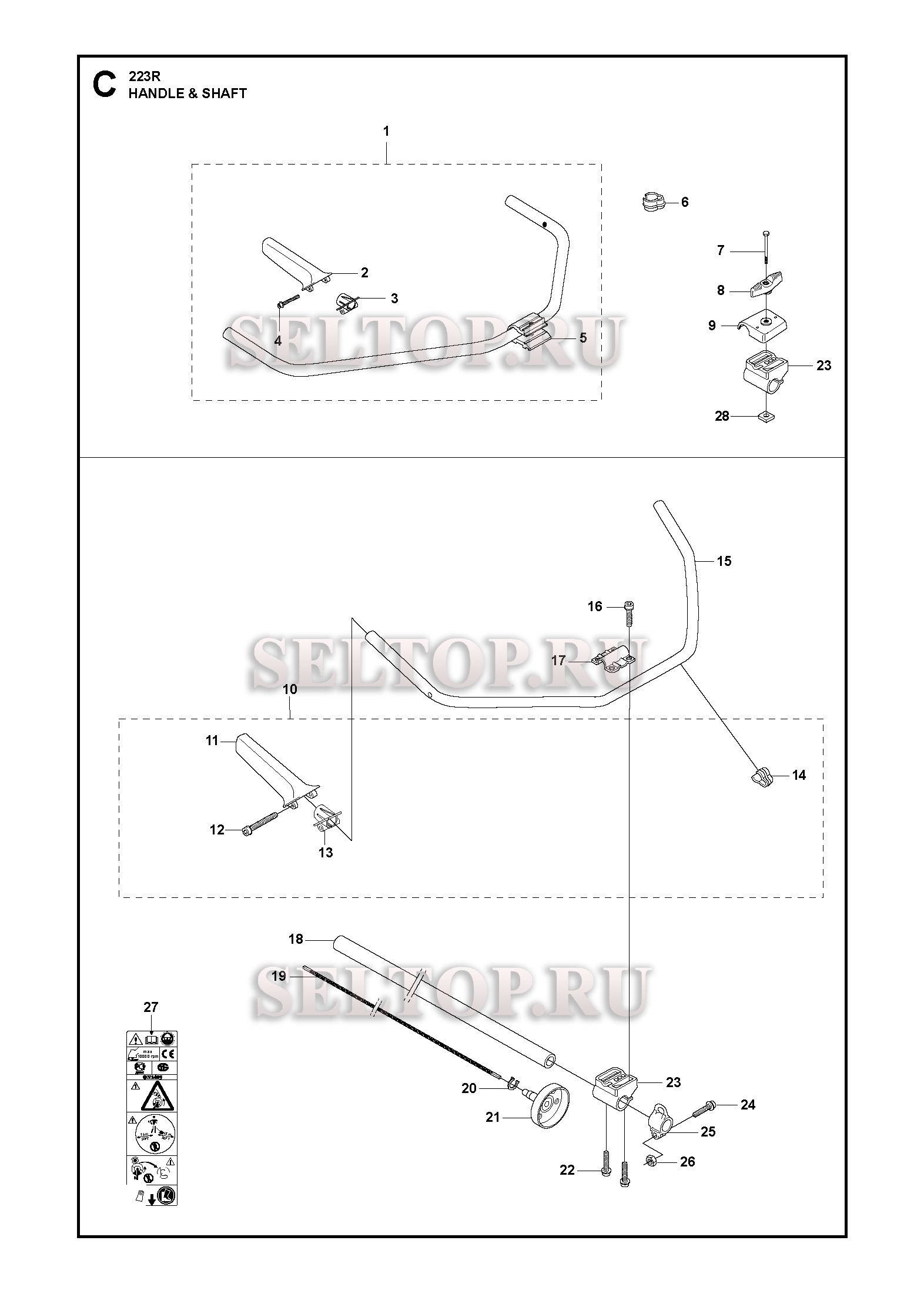 Вал привода, ручка для триммера Husqvarna 223 R (c 2006-01), взрыв-схема: