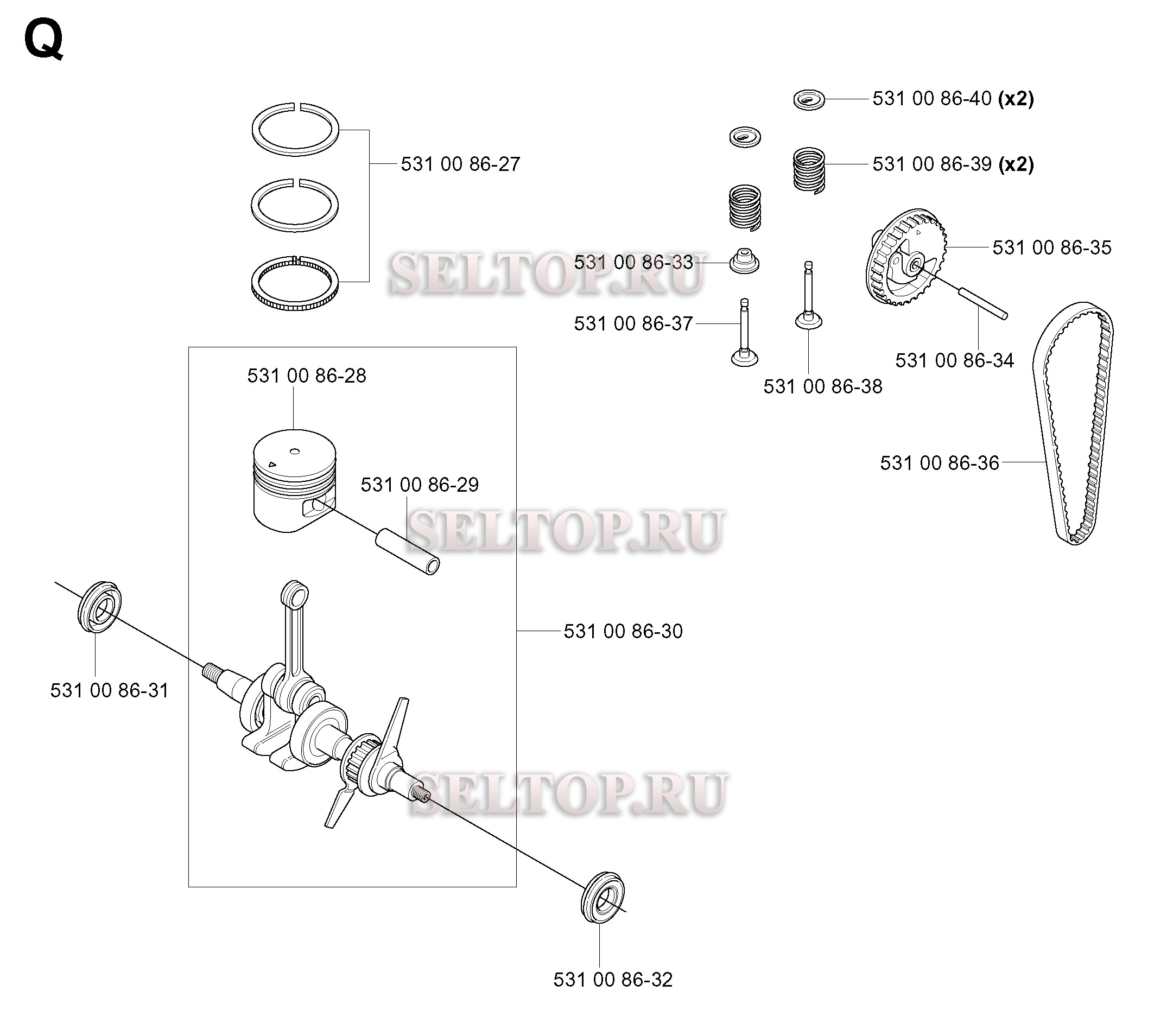 Поршень, коленвал для триммера Husqvarna 224 L