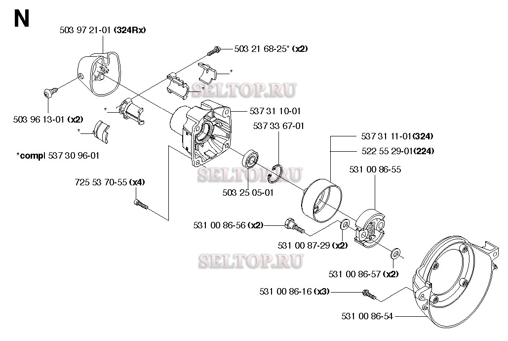 Сцепление для триммера Husqvarna 224 L, взрыв-схема: