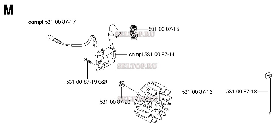 Зажигание для триммера Husqvarna 224 L, взрыв-схема: