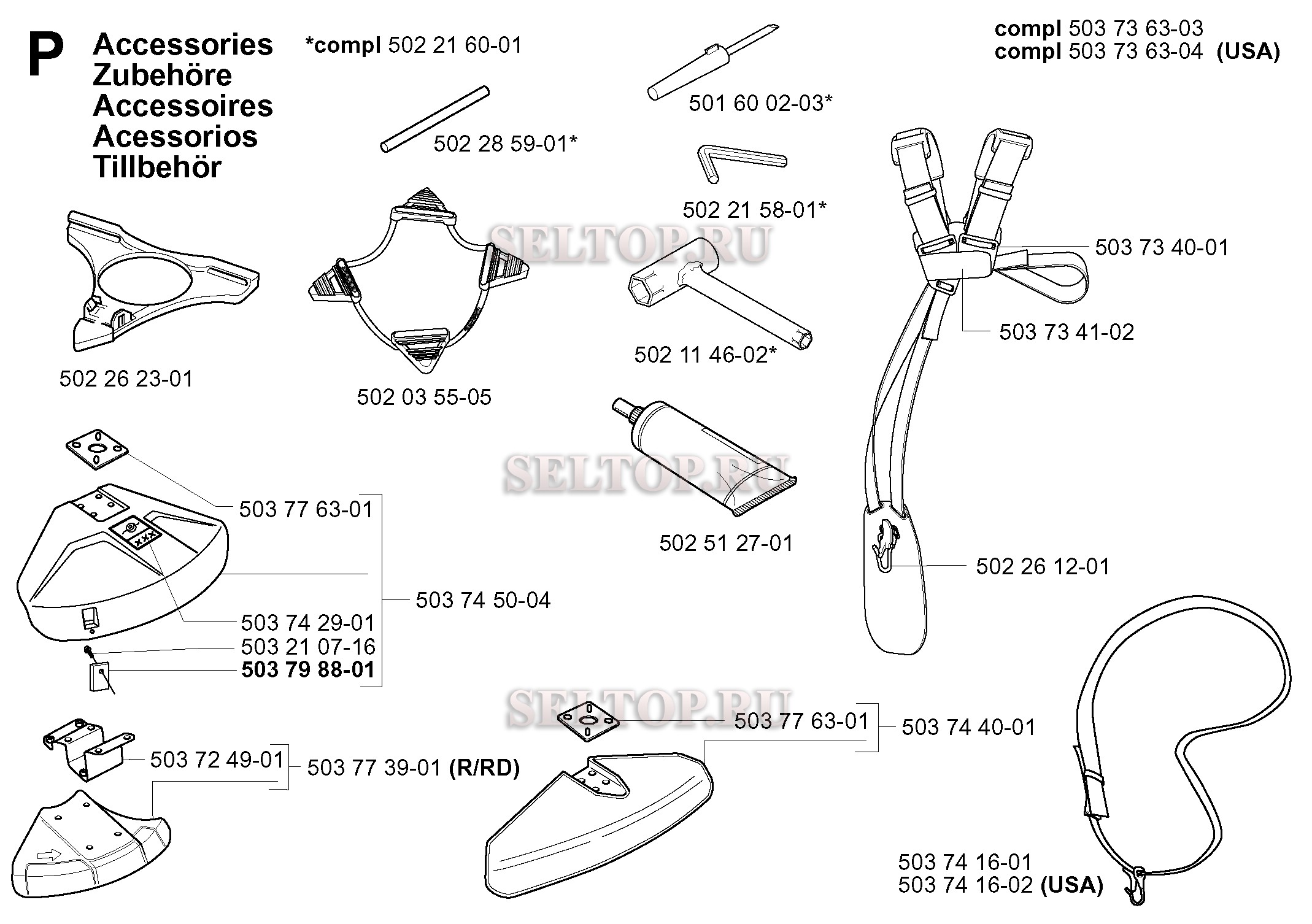 Аксессуары для триммера Husqvarna 227 LD (с 2000-10), взрыв-схема: