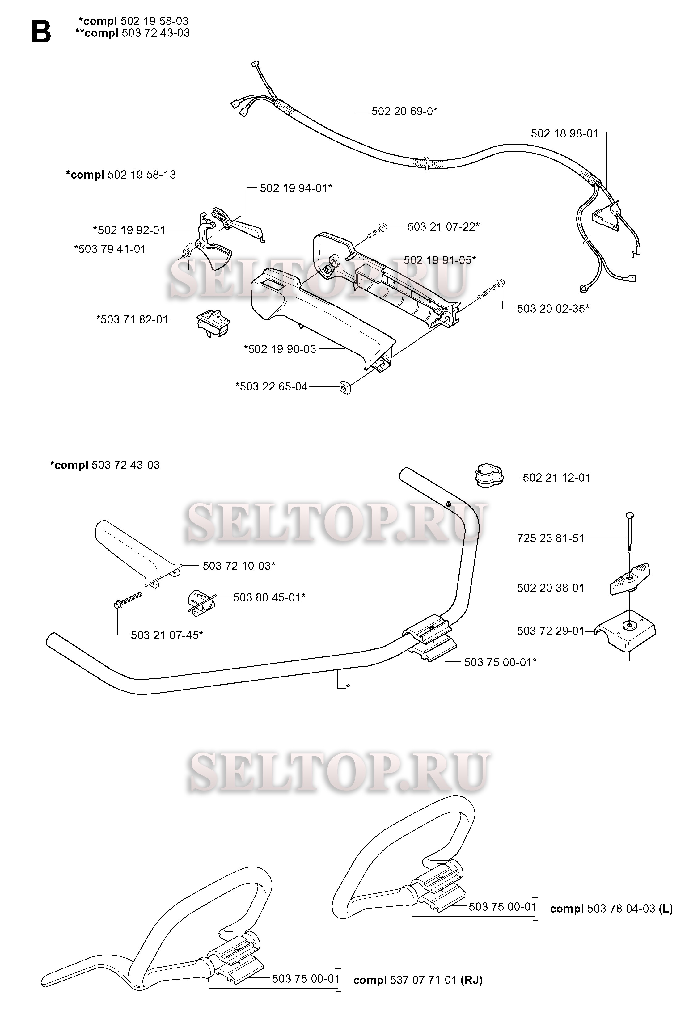 Ручка, рычаги управления для триммера Husqvarna 227 LD (с 2000-10)