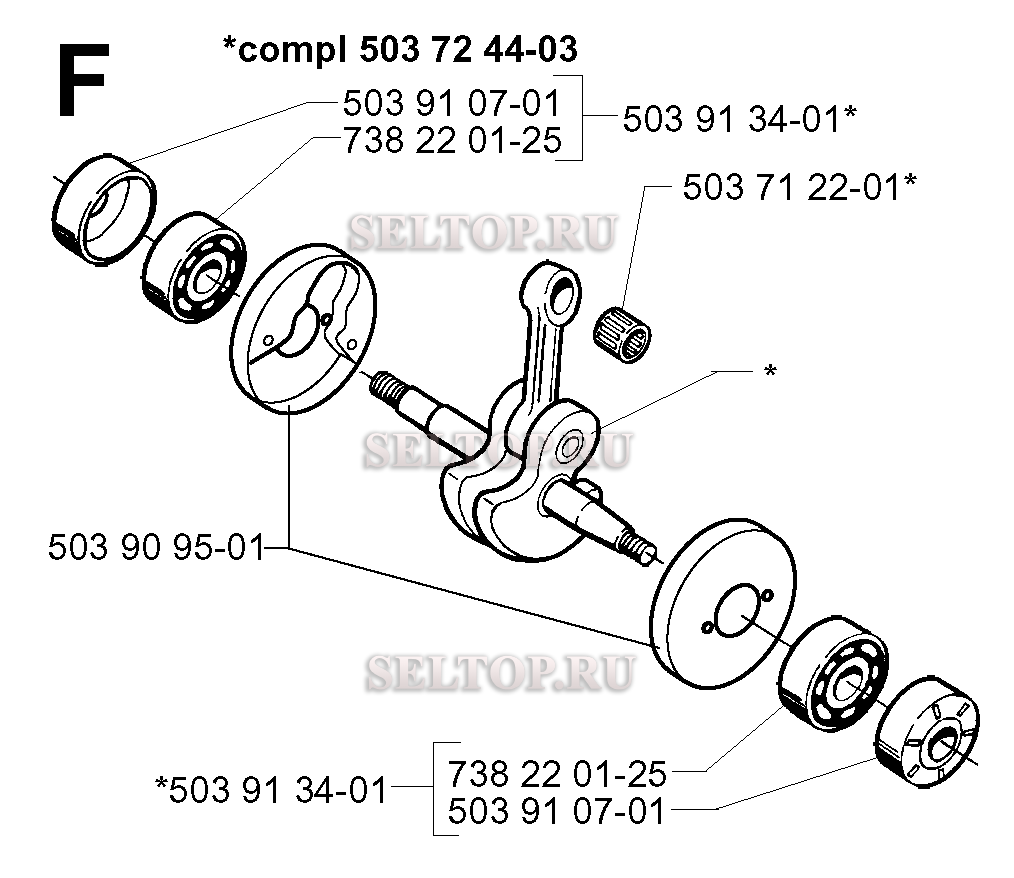 Коленвал для триммера Husqvarna 227 R (c 1999-09), взрыв-схема: